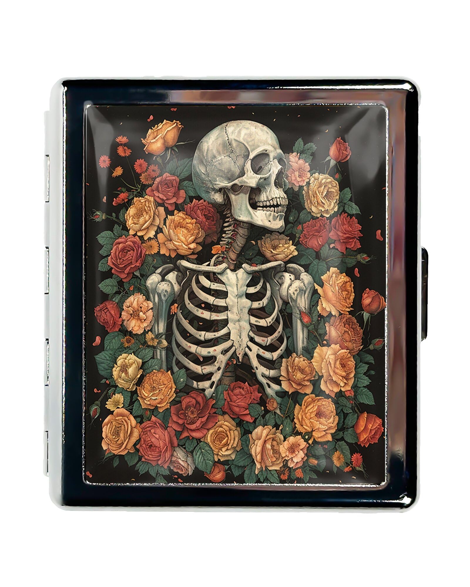 DingRound Cute Travel Pill Box Organizer with 8 Compartments - Compact and Fashionable Pill Case with Mirror - Ideal for Medications (Skeleton in