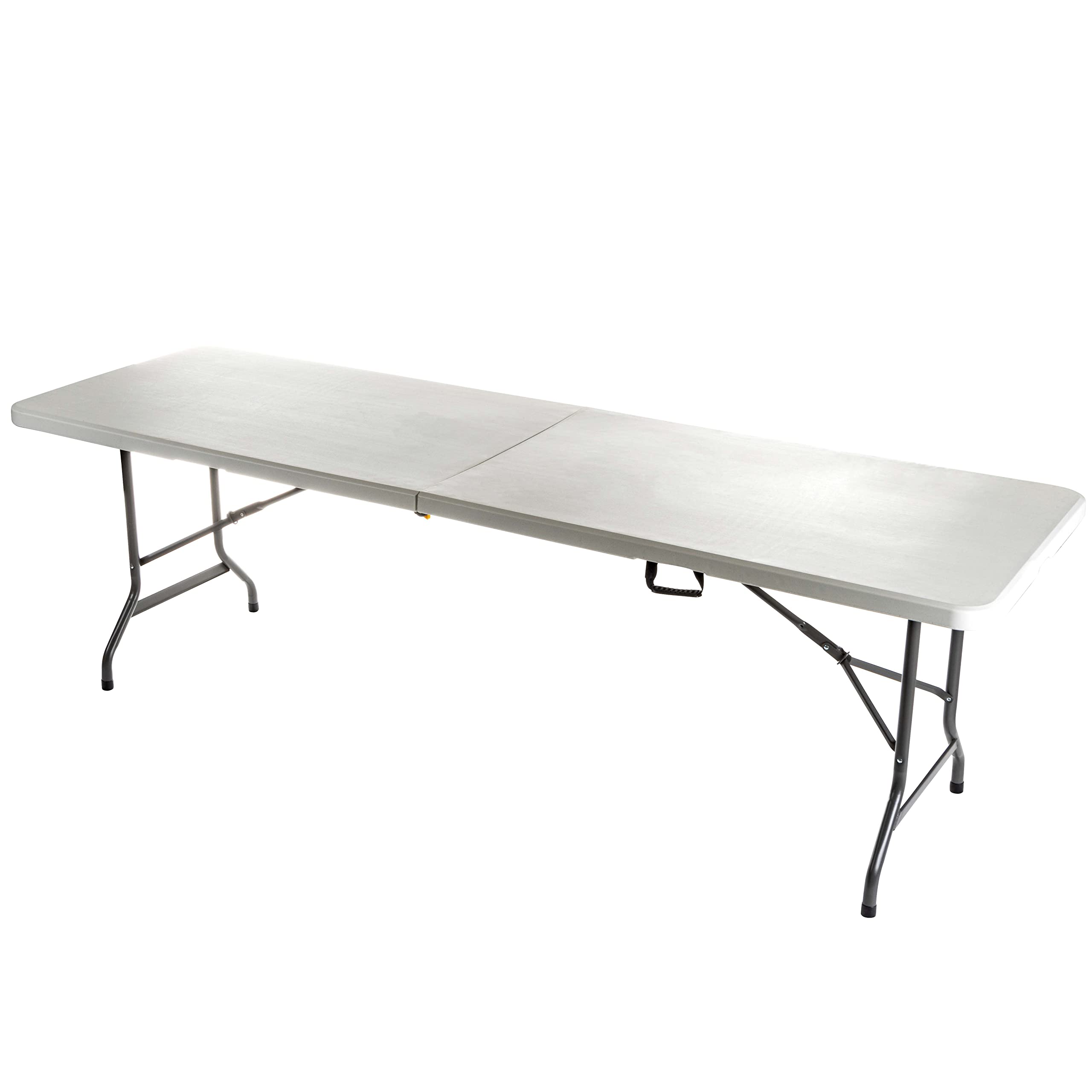 The IndestrucTable Too Center-Folding Table with folding legs is perfect for meeting your personal and professional needs from game nights to extending your available workspace Perfect for your next barbecue with friends, putting together a puzzle, painting and more, this 30” W by 96” L by 29”