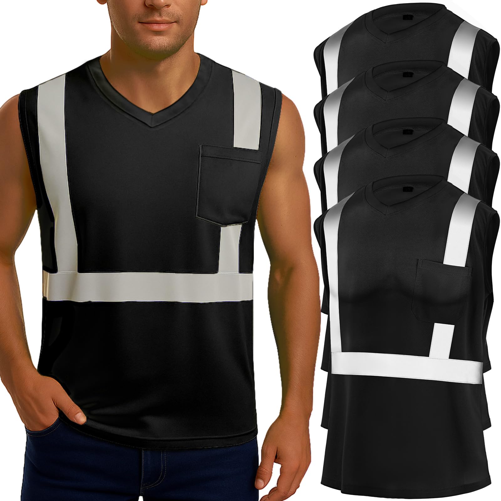 Amylove 4 Pcs Hi Vis Sleeveless Reflective Shirt for Men Class 2 Construction Work Shirts with Pockets for Men Women