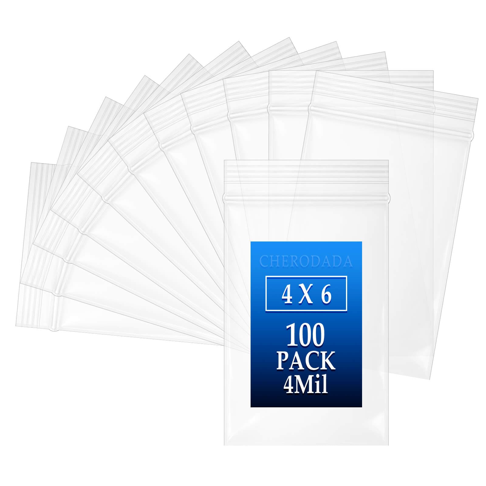 【Bag Size】4" W x 6" L (below the zipper), 100 pcs resealable small plastic bags in one set. These plastic zipper bags are perfect size for small parts, business travels, small business, industrial applications ete . 【High Quality】The thickness of this small zip bags is 4 Mil= 0.004" (single