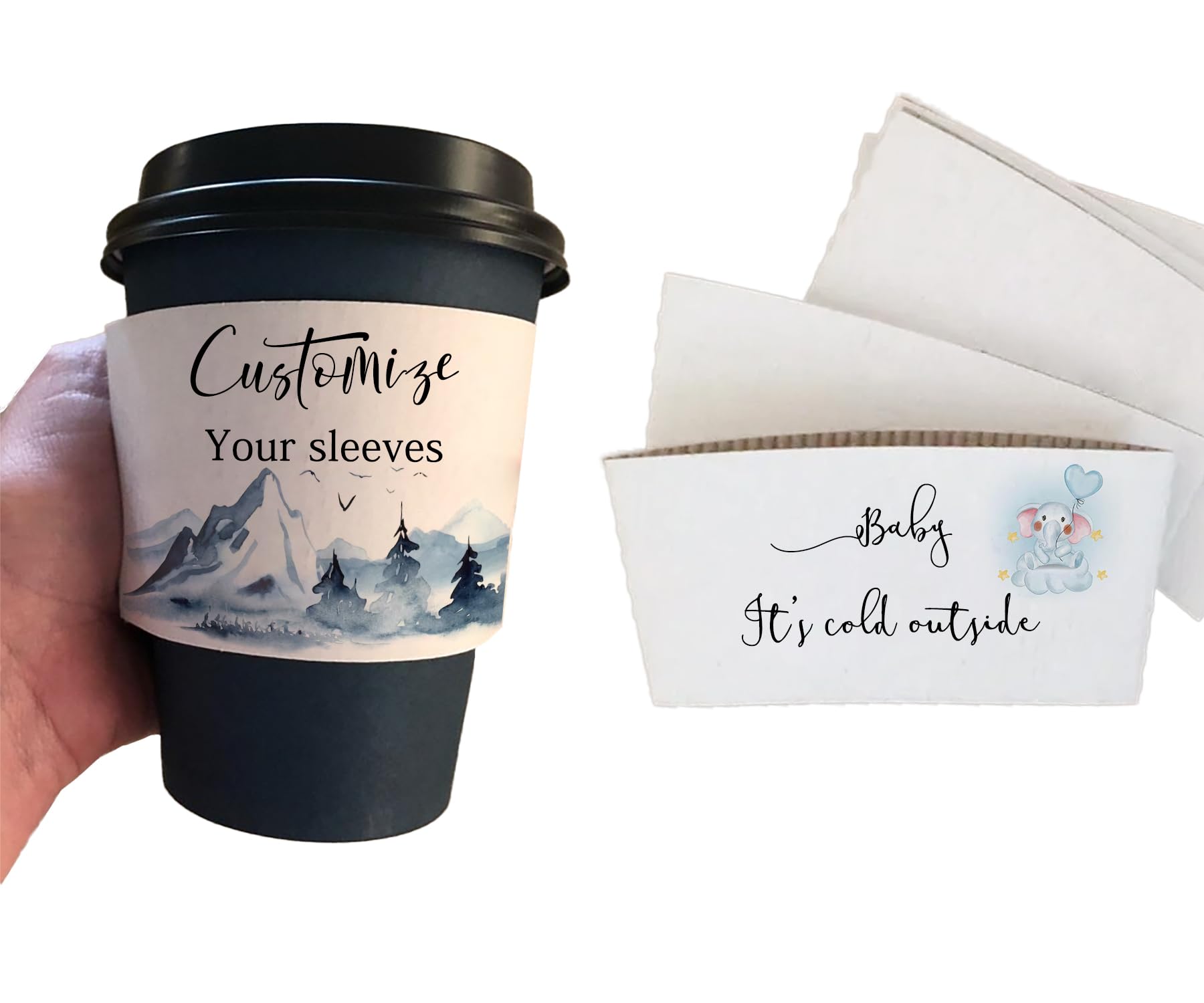 Custom Coffee Sleeves,Personalized Disposable cup sleeves with your logo/text,Custom sleeves For Coffee lover/Baby shower/Wedding/Party (White coffee