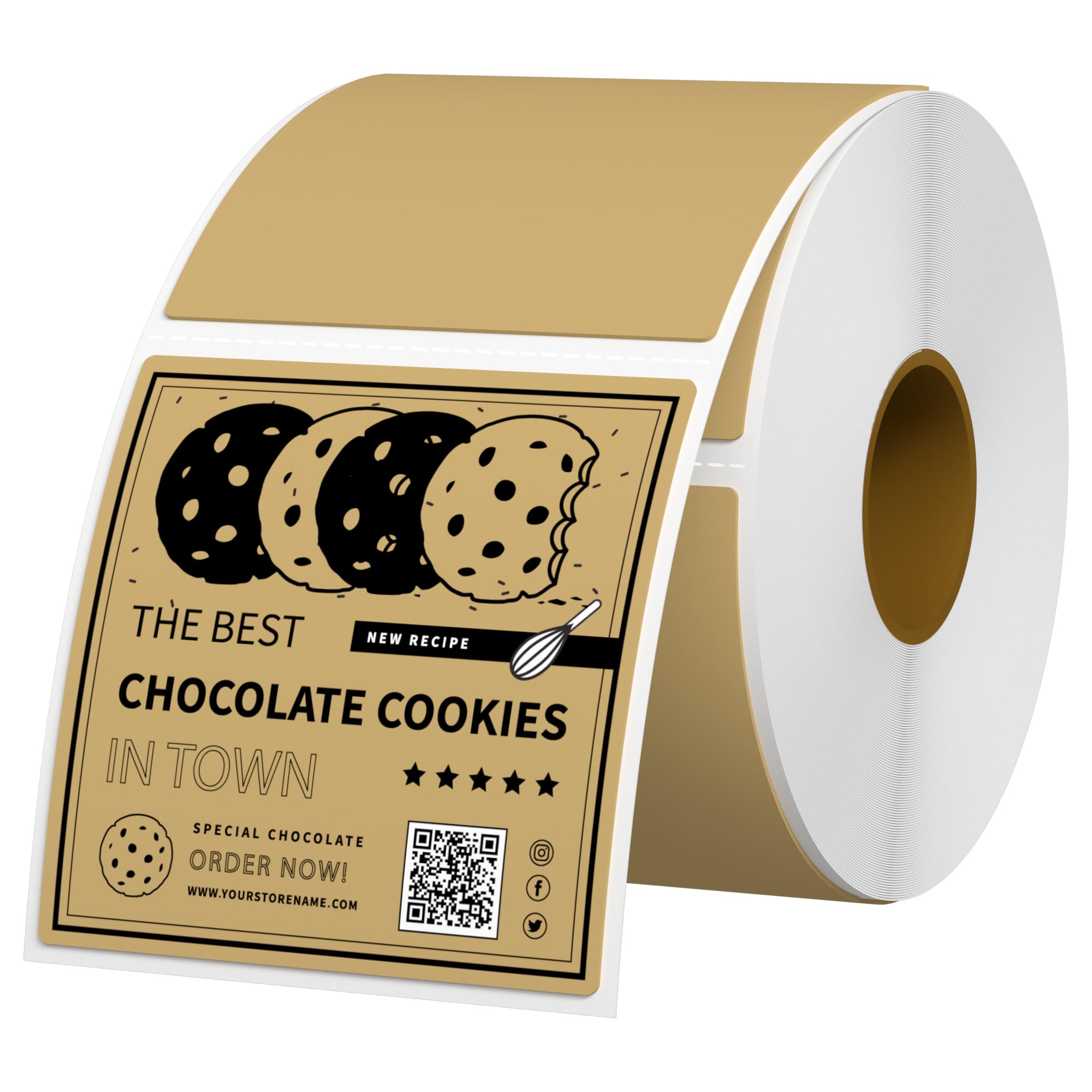 2x2 Square Thermal Labels Thermal Sticker Labels with Perforated Line, 500 Sheets/1 Roll, Brown, for QR Code, Baking, Product Logo, Business