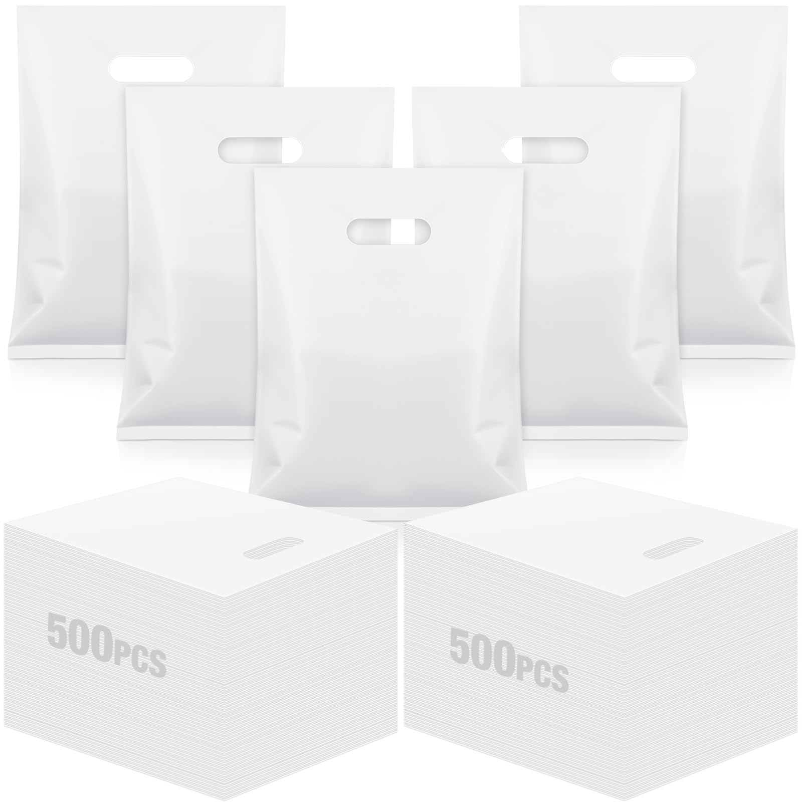 Package Includes: you will receive 500 white plastic bags with die cut handles, sufficient quantity to meet a variety of different needs, suitable for daily use, party gifts, small business packaging, etc Suitable Size: these gift bags are 9x12 inches in size, with enough space for small gifts, cand