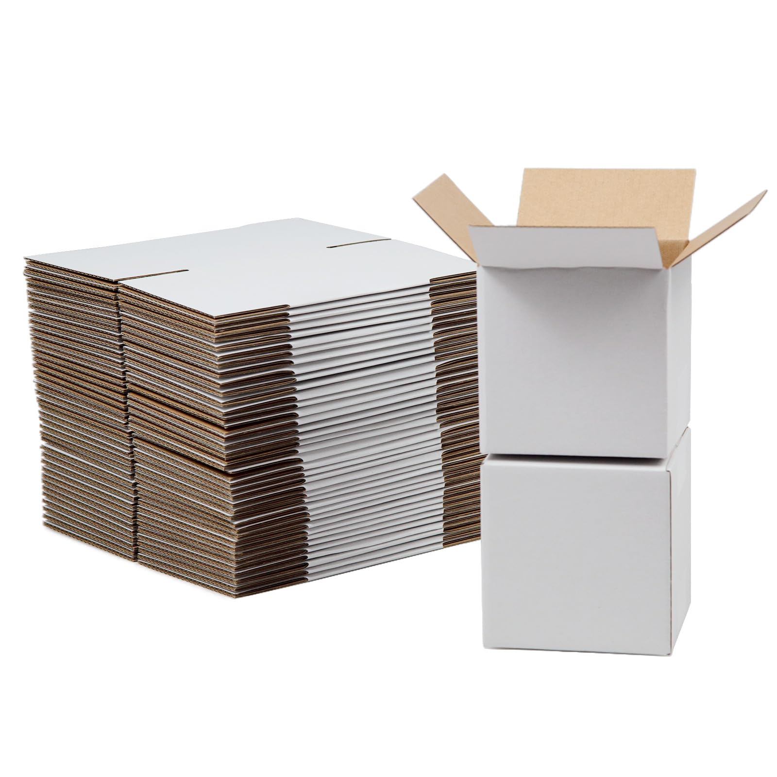 HESESOH 4x4x4 Inches Shipping Boxes Set of 40, White Corrugated Cardboard Box Literature Mailer for Packing Small Business