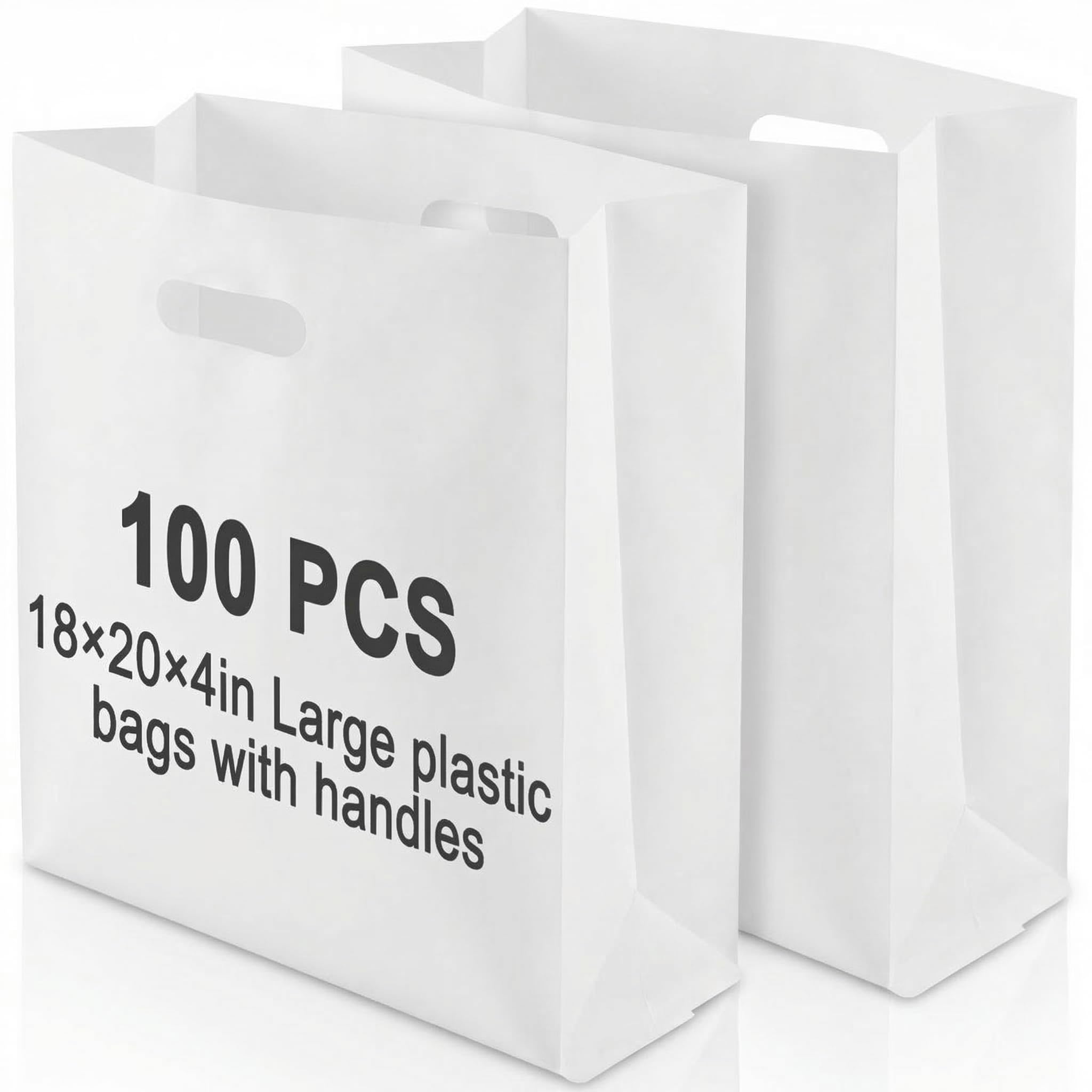 Maitys 100 Pcs 18 x 20 x 4 in Extra Large Plastic Bags with Handles, 2 Mil Thick Large Merchandise Shopping Bags for Small Business, Trade Show, Party