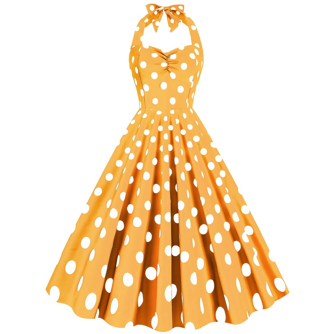 Women 1950s Rockabilly Audrey Hepburn Prom Tea Party Dresses Vintage Polka Dot Halter Cocktail Swing Dress