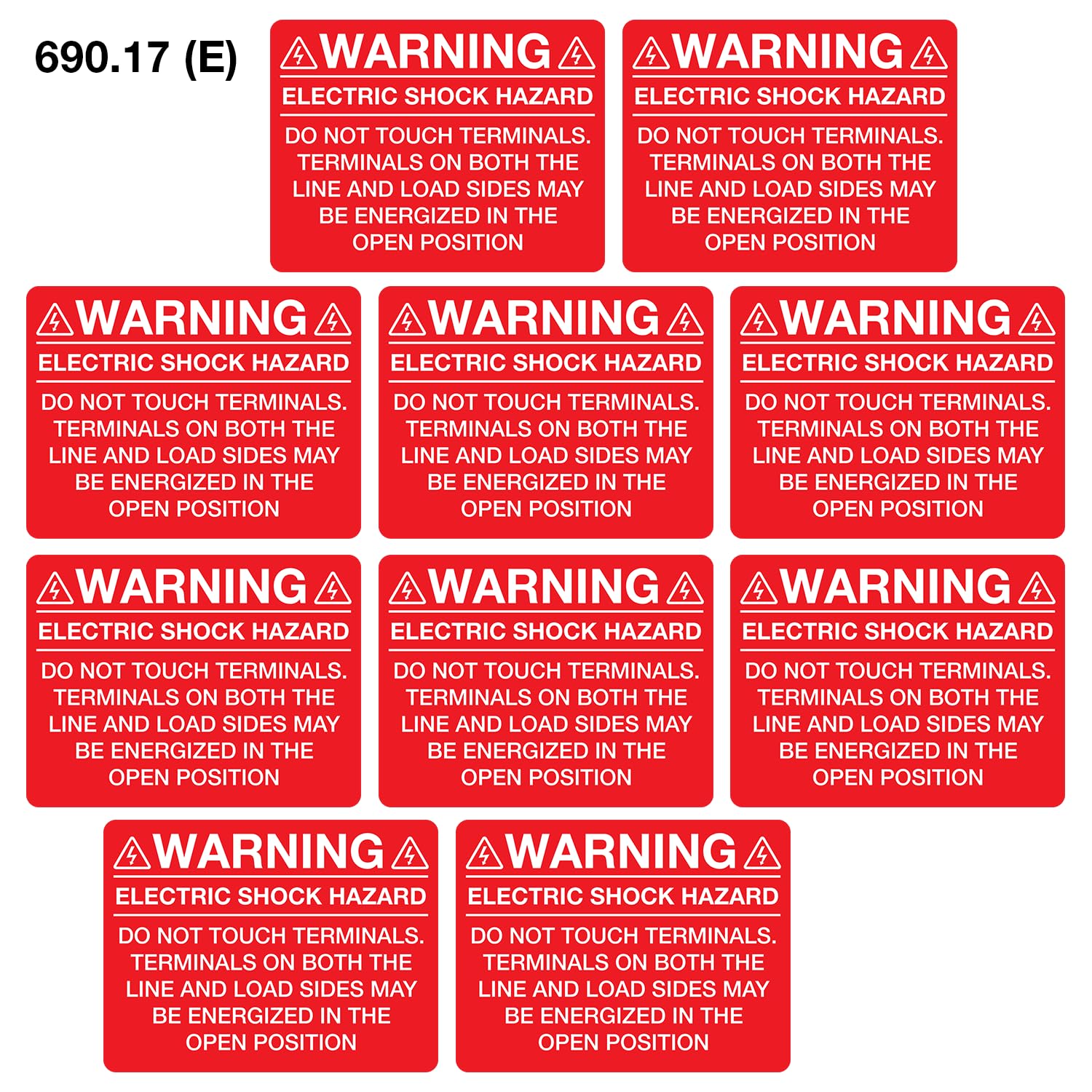 Solar Panel Label Pack, NEC 690.17E, UV Resistant, 10 Stickers