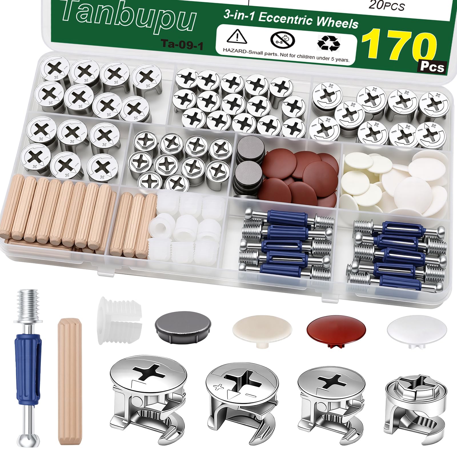 170PCS Cam Locks for Furniture,3-in-1 Eccentric Hardware Wheels, Cam Lock Nuts and Cam Screws, Furniture Cam Lock Fasteners for Drawer Dresser Cabinet