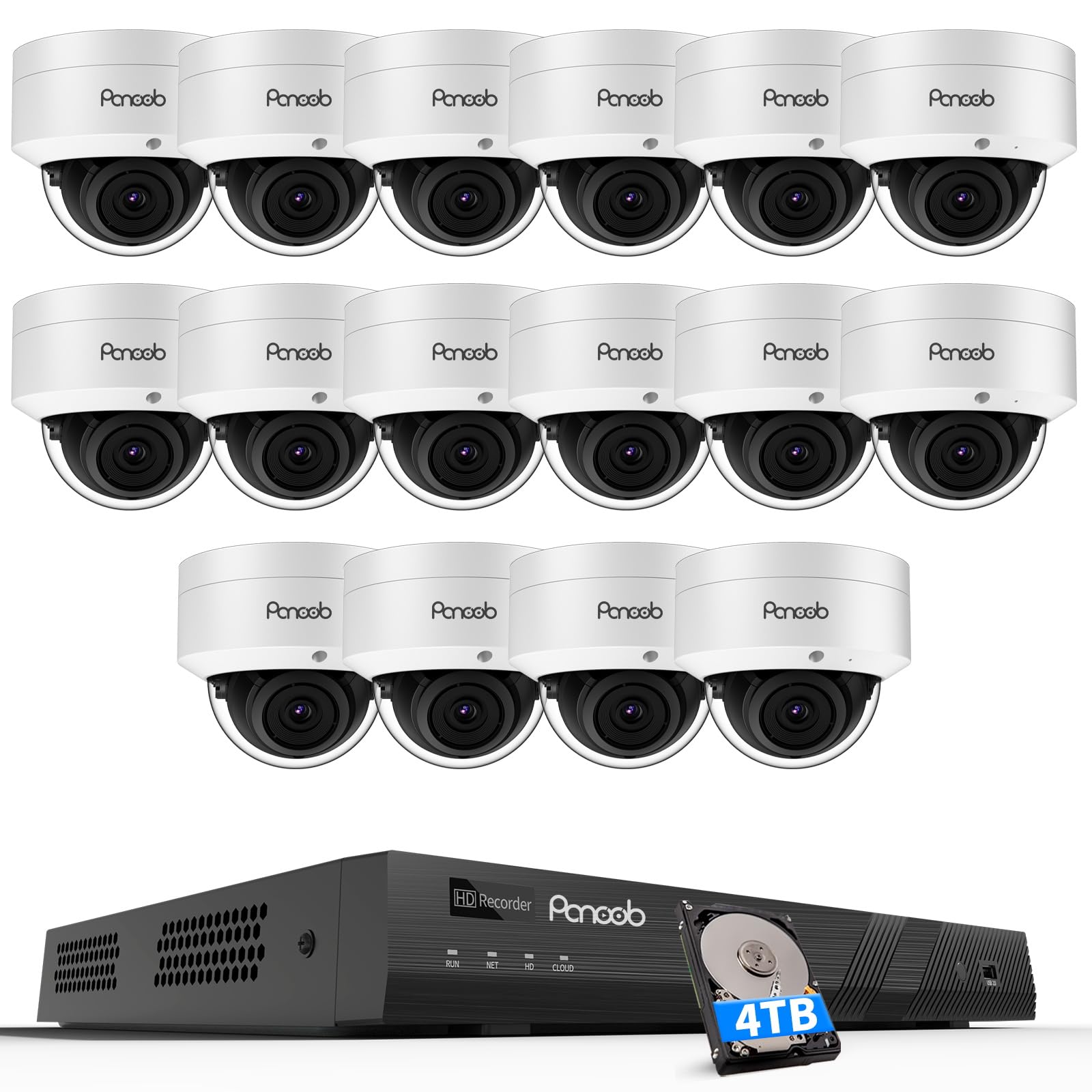 PANOOB PoE 4K 16 Channel Security Camera System, 16x 8MP IK10 Vandal Dome Cameras with Human/Vehicle Detection, Built-in Mic, 24/7 Remote Access, 4TB
