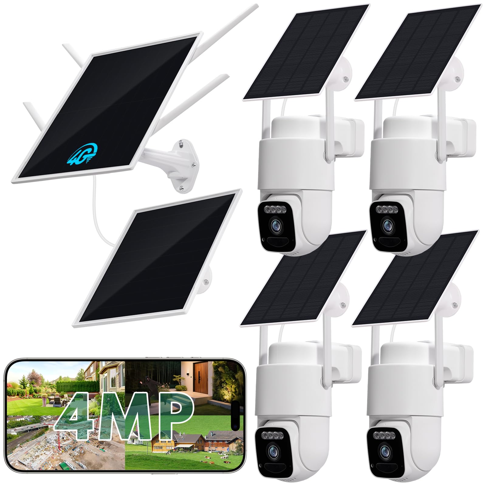 4G LTE Cellular Solar Security Cameras Wireless Outdoor, No WiFi Needed & 25W Solar Panel, 4 Cam Kit, 2K Color Night Vision, Human Tracking, 2-Way