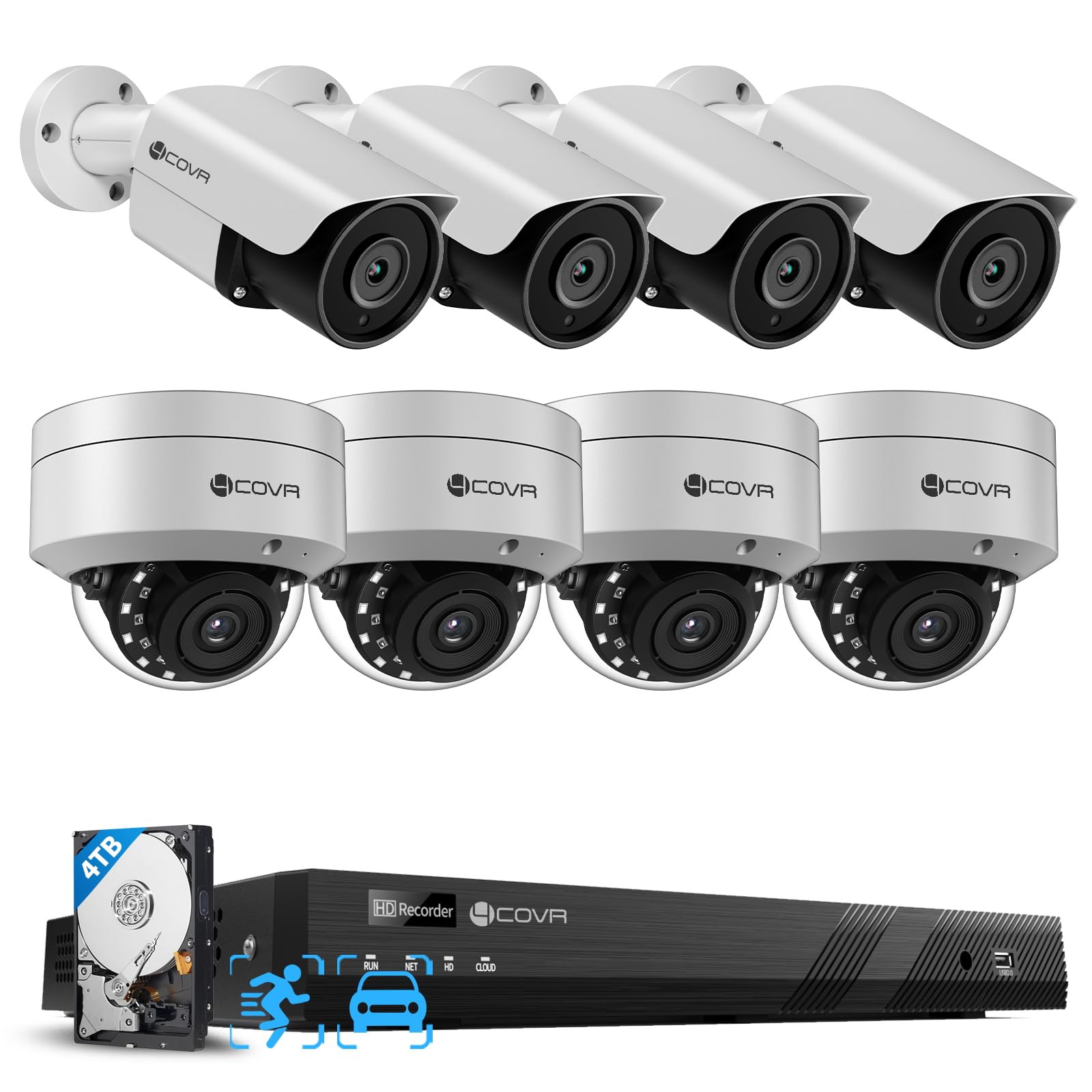 4COVR 16 Channel 4K Security Camera System - Human Vehicle Detection, 4K 4TB NVR, 4 Dome IK10 Vandal-Proof 4 Bullet 8MP Wired PoE IP Camera for