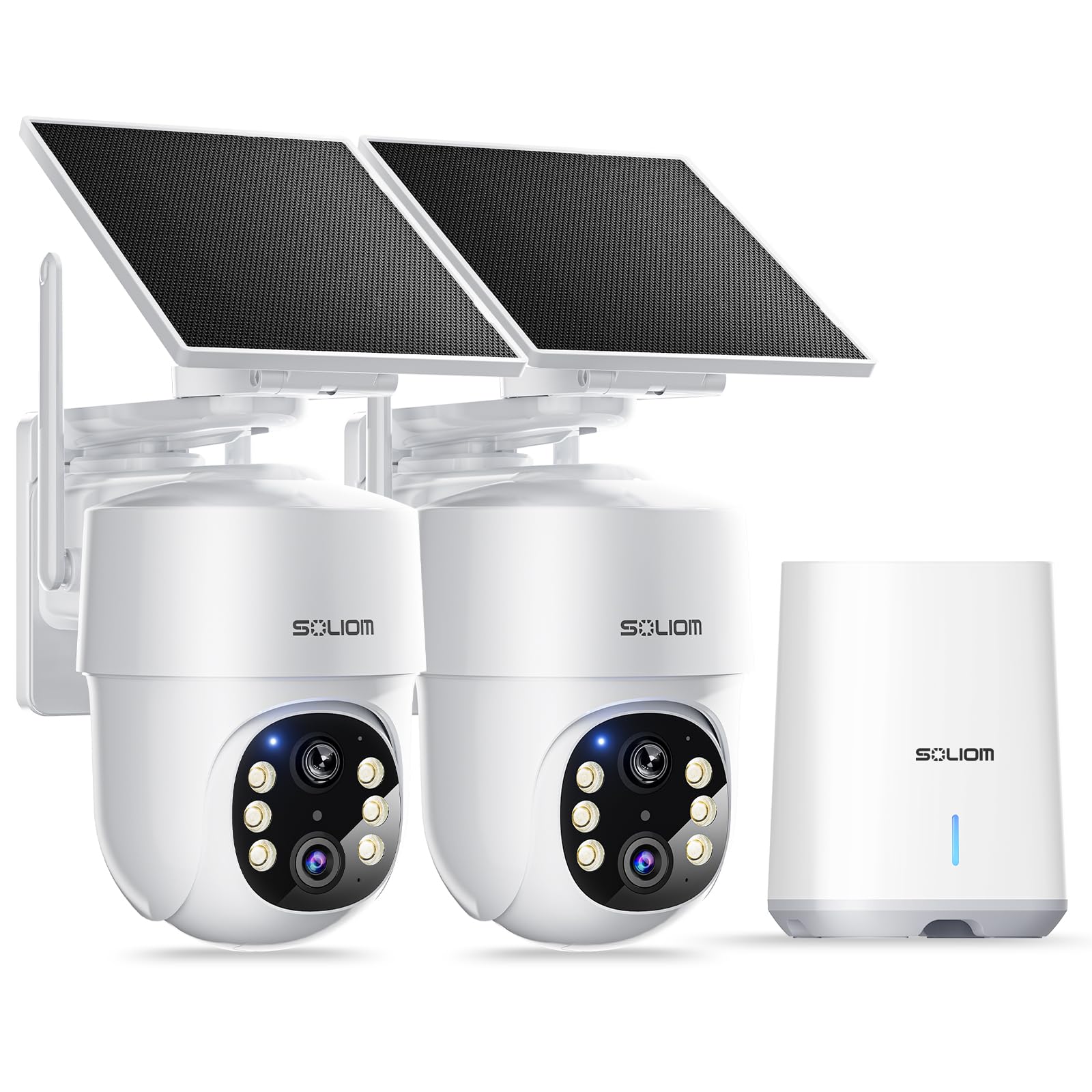SOLIOM- 5MP Security Cameras Wireless Outdoor, No Subscription & Solar Powered,2-Cam Pack Home Security Camera with 360° Auto Human Motion Tracking,