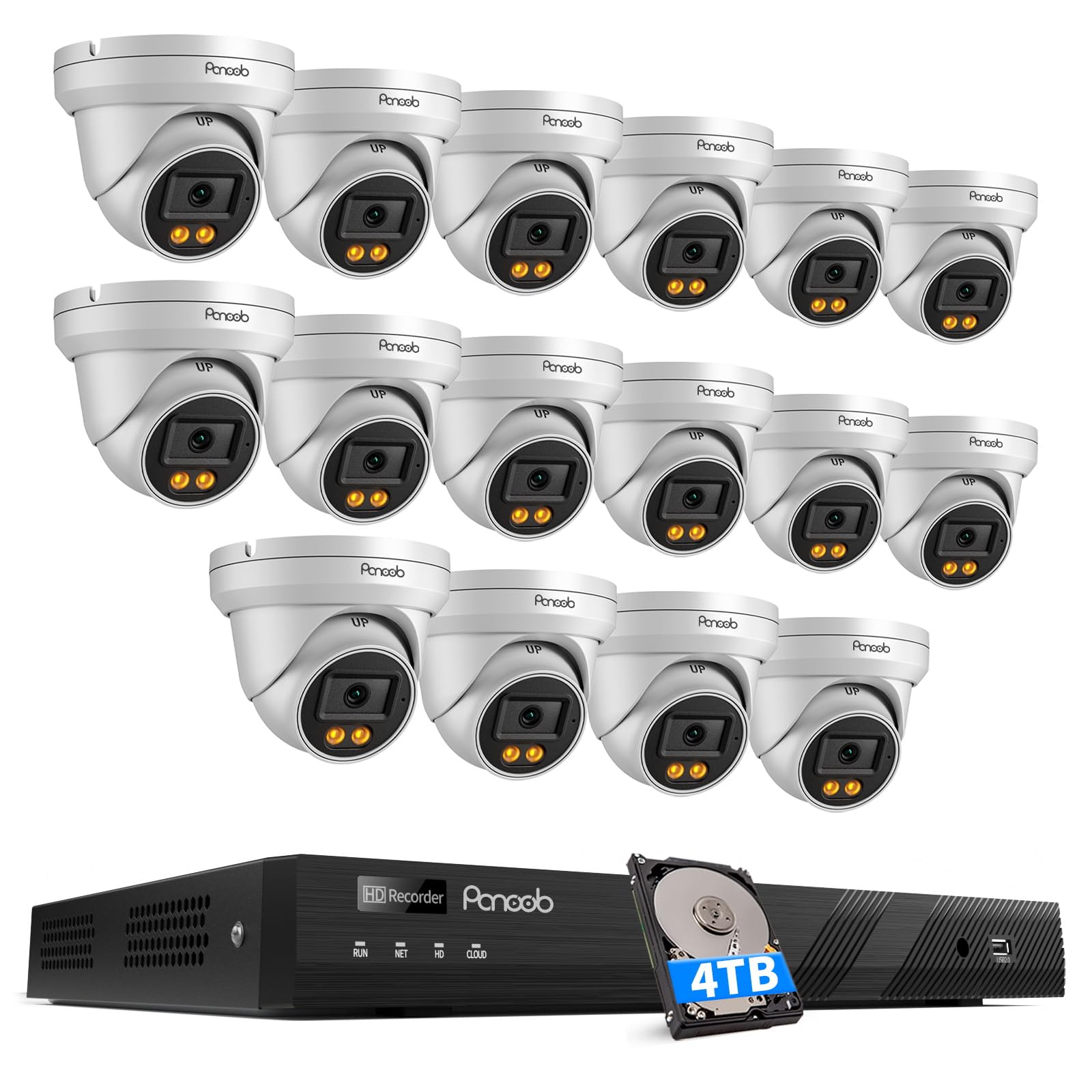 PANOOB 16 Channel Security Camera System, 16x 5MP Wired IP PoE Dome Camera with Spotlight Color Night Vision, AI Human Detection, Built-in Mic, Remote