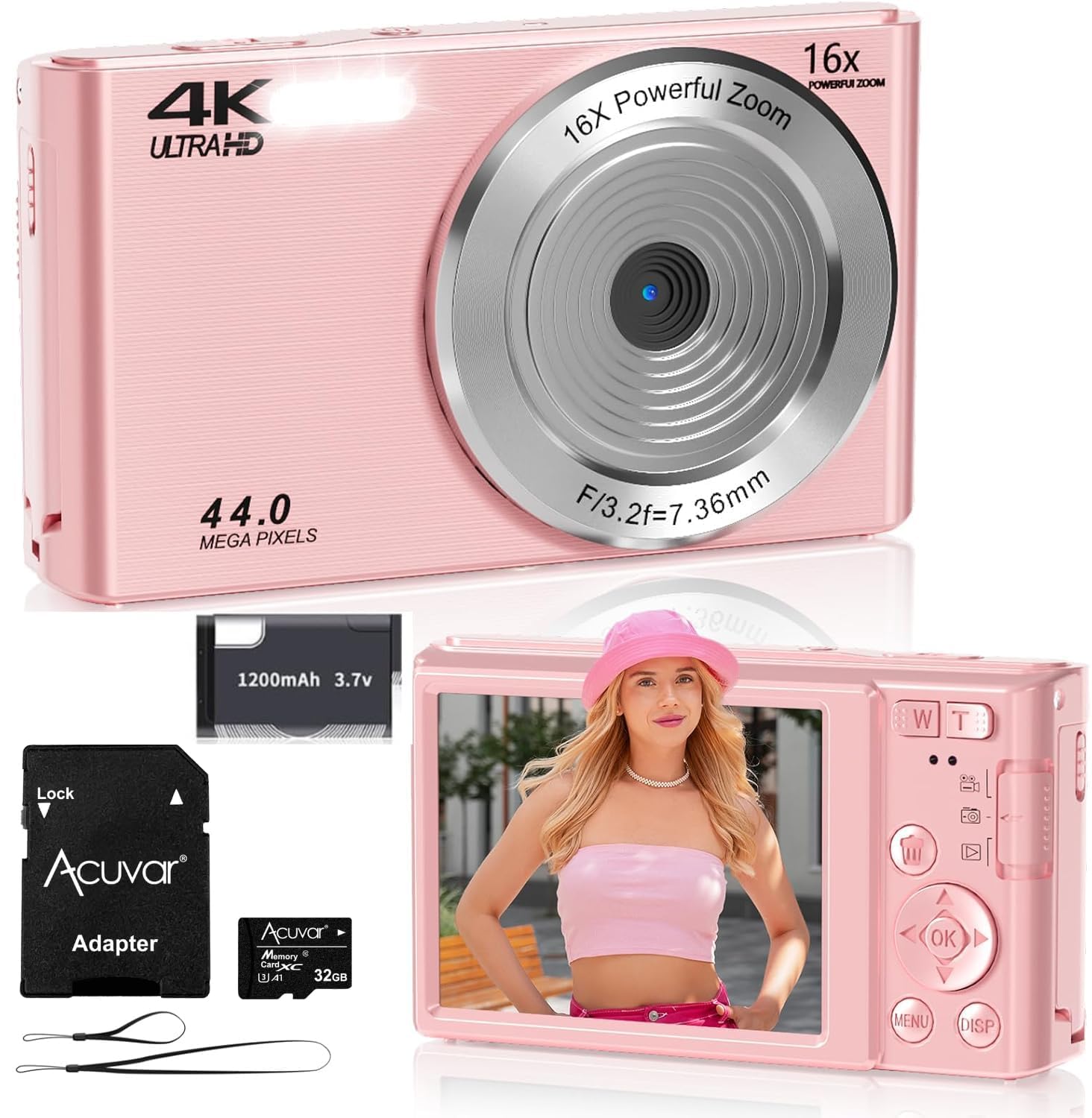 Acuvar 44MP 4K Digital Camera 16X Zoom, 2.4" Screen, 32GB Micro SD Card - Compact Digital Point and Shoot Camera for Kids, Teens, Students, Travel,
