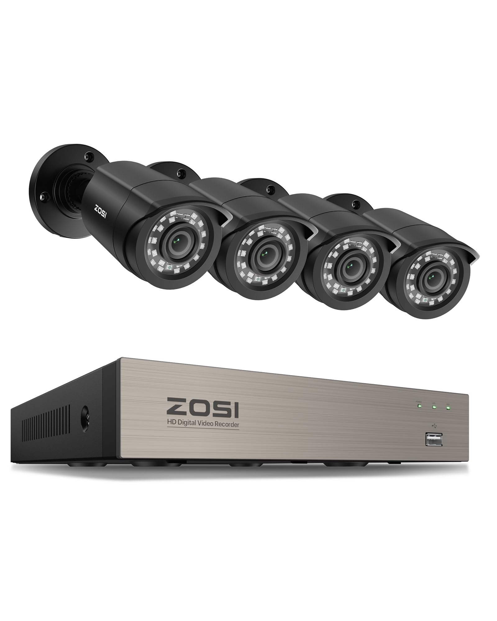 ZOSI 3K Lite Security Camera System Indoor Outdoor,AI Human/Vehicle Detection,Night Vision,Remote Access,4pcs 1080P 1920TVL Weatherproof Surveillance