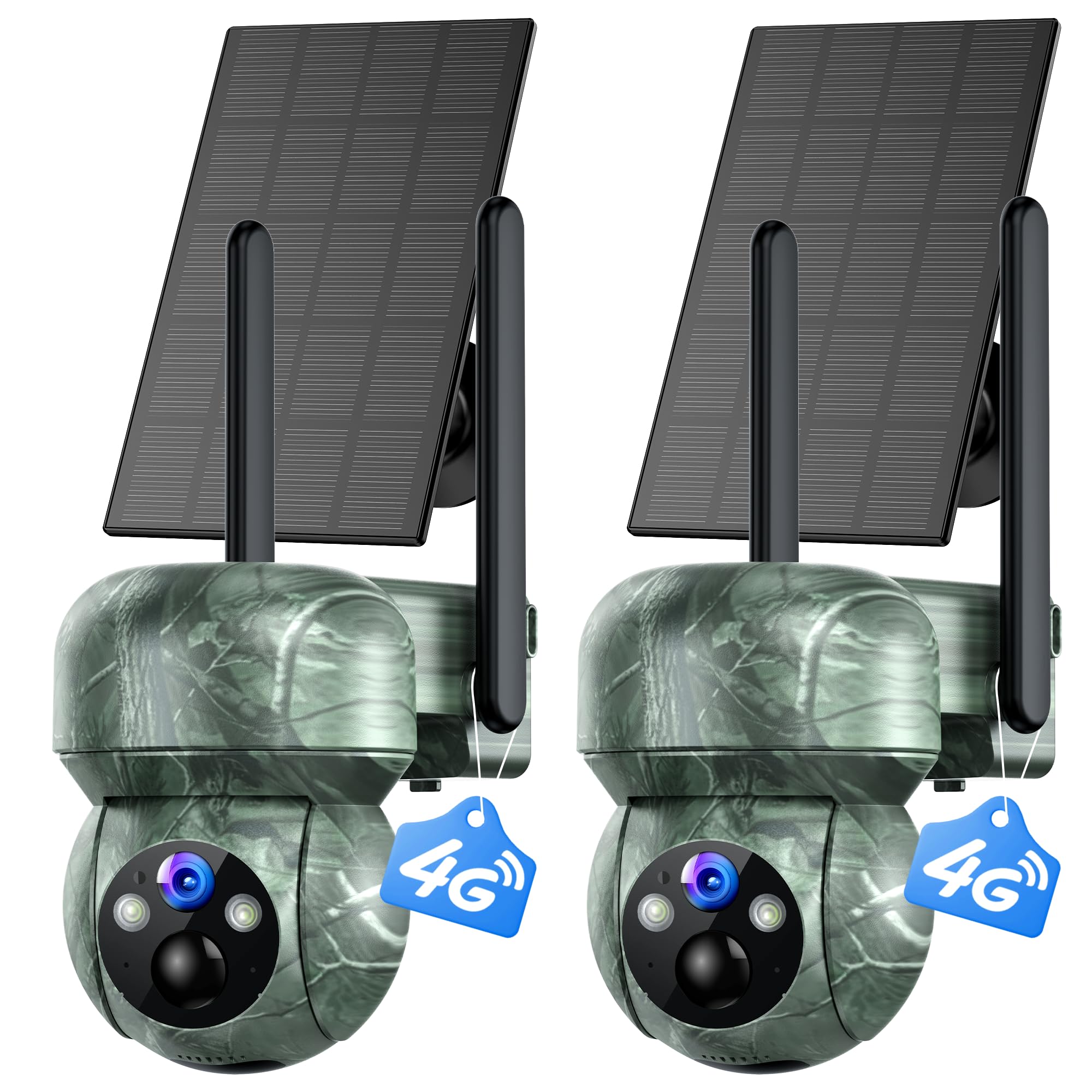 2Pack 4G LTE Cellular Trail Camera Solar: 2K Game Cameras Built-in SIM Card Hunting Cameras Wireless Battery with PTZ 360° Color Night Vision Motion