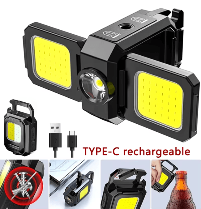 UltraBright & Portable Mini Flashlight Keychain Light Your Perfect OntheGo Lighting Solution!Stay prepared with this USB rechargeable mini flashlight keychain light, featuring dual COB work lights and a super bright 1000LM output for powerful...