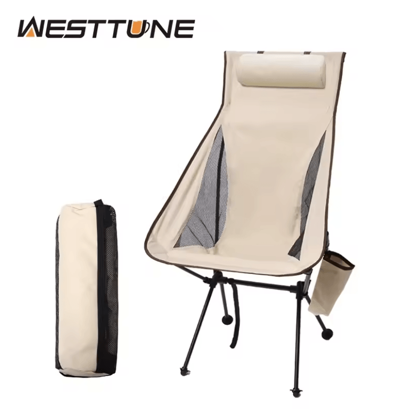 Portable Folding Camping Chair With Headrest Lightweight Outdoor Fishing Chair brown