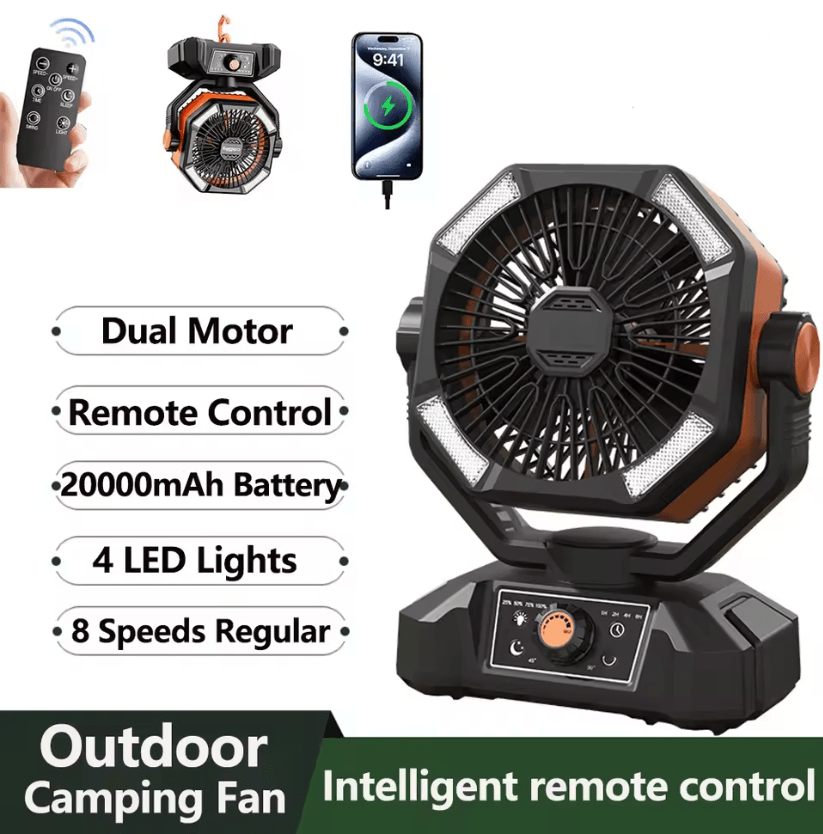 Stay cool and comfortable wherever you go with this portable camping fan featuring a massive 20000mAh rechargeable battery and builtin LED lantern. Designed for outdoor enthusiasts, it delivers strong airflow, longlasting battery life, and versatile...
