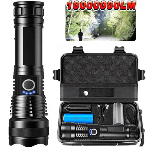Product Description Illuminate your surroundings with confidence using this high power tactical LED flashlight. Designed for camping, fishing, and emergency use, it features a zoomable beam, built in display light, and USB rechargeable convenience....