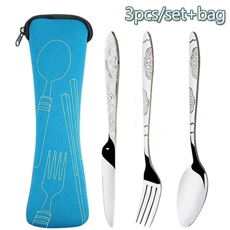 Portable Travel Cutlery Set With Zipper Case Washable Camping Utensil Kit green