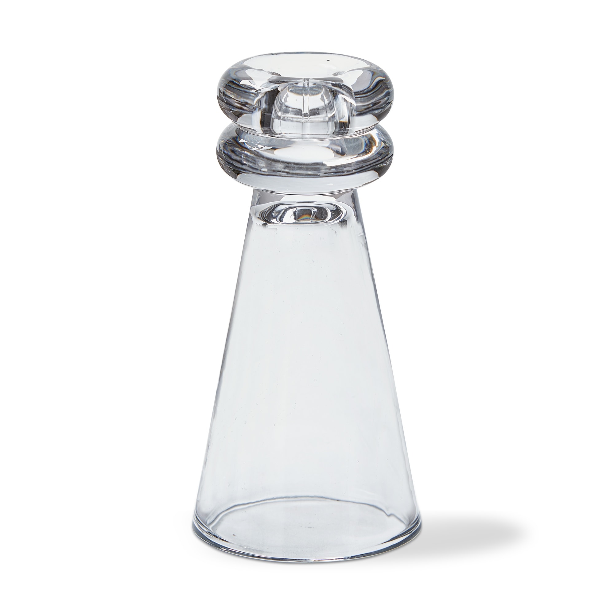 Illuminate your space with this elegant set of two chunky clear glass taper candle holders. Each holder stands at 3.13 inches high and measures 1.5 inches in width and length, making them the perfect size for any tabletop or mantel.