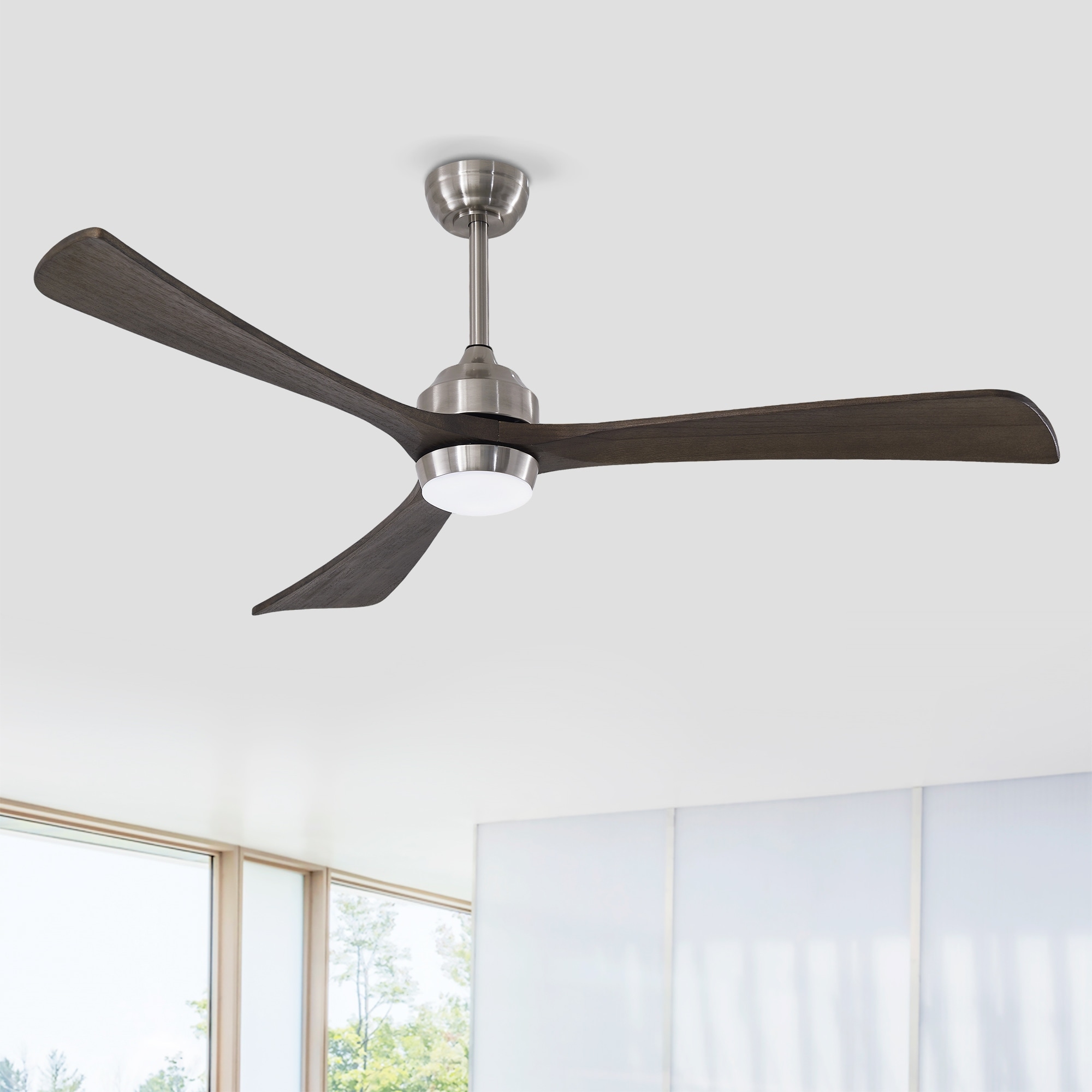 52 Inch Modern Ceiling Fan with LED Light, 3 Solid Wood Blades, Remote Control (3-Color Dimmable & Reversible)
