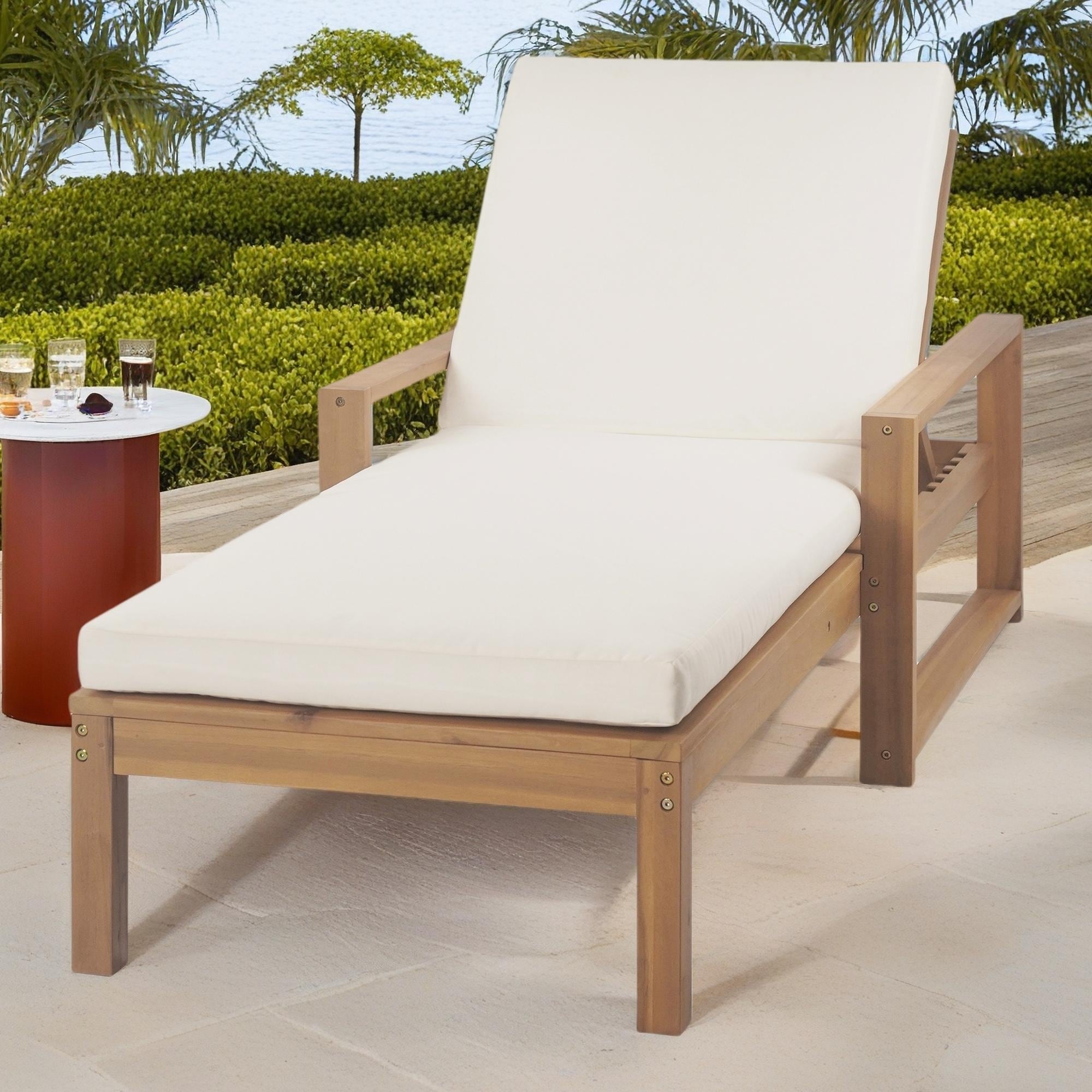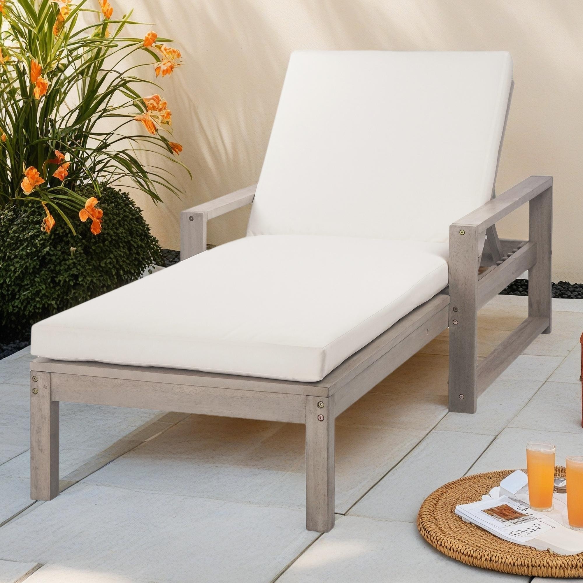 Outdoor Acacia Wood Chaise Lounge Chairs with Cushion & Adjustable Backrest