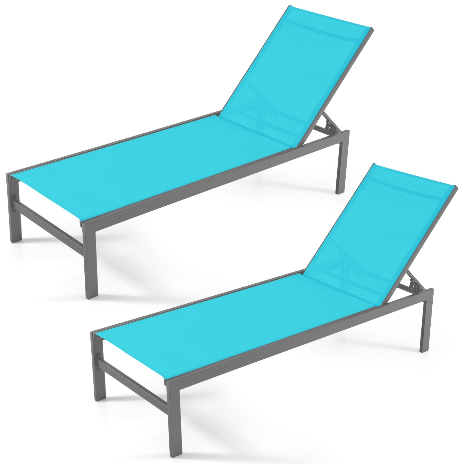 Gymax Set of 2 Outdoor 6-Position Lounge Chair Chaise Aluminium Adjust