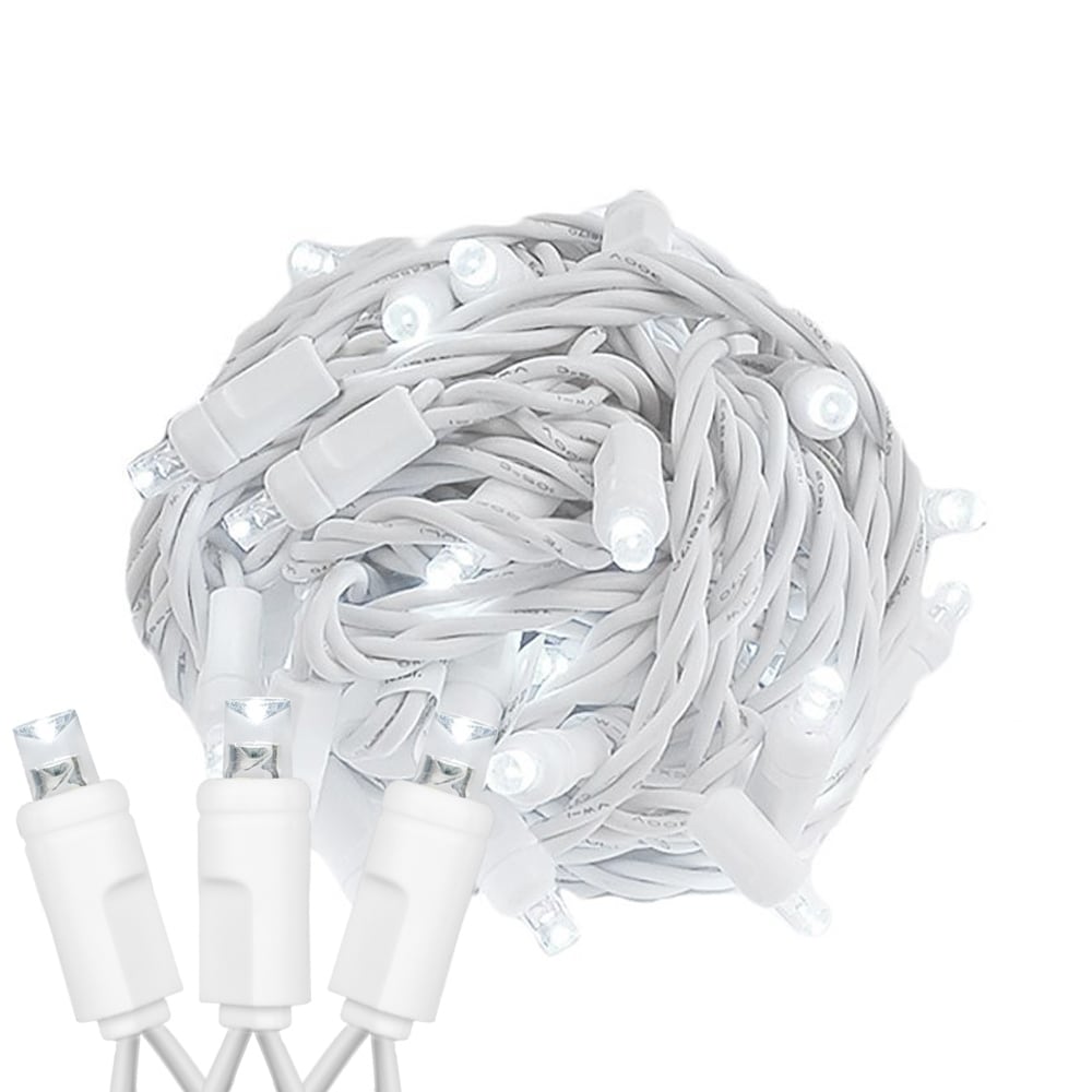 100 Light LED Christmas Mini Light Set, Patio Light, Warm White, White Wire, 34’