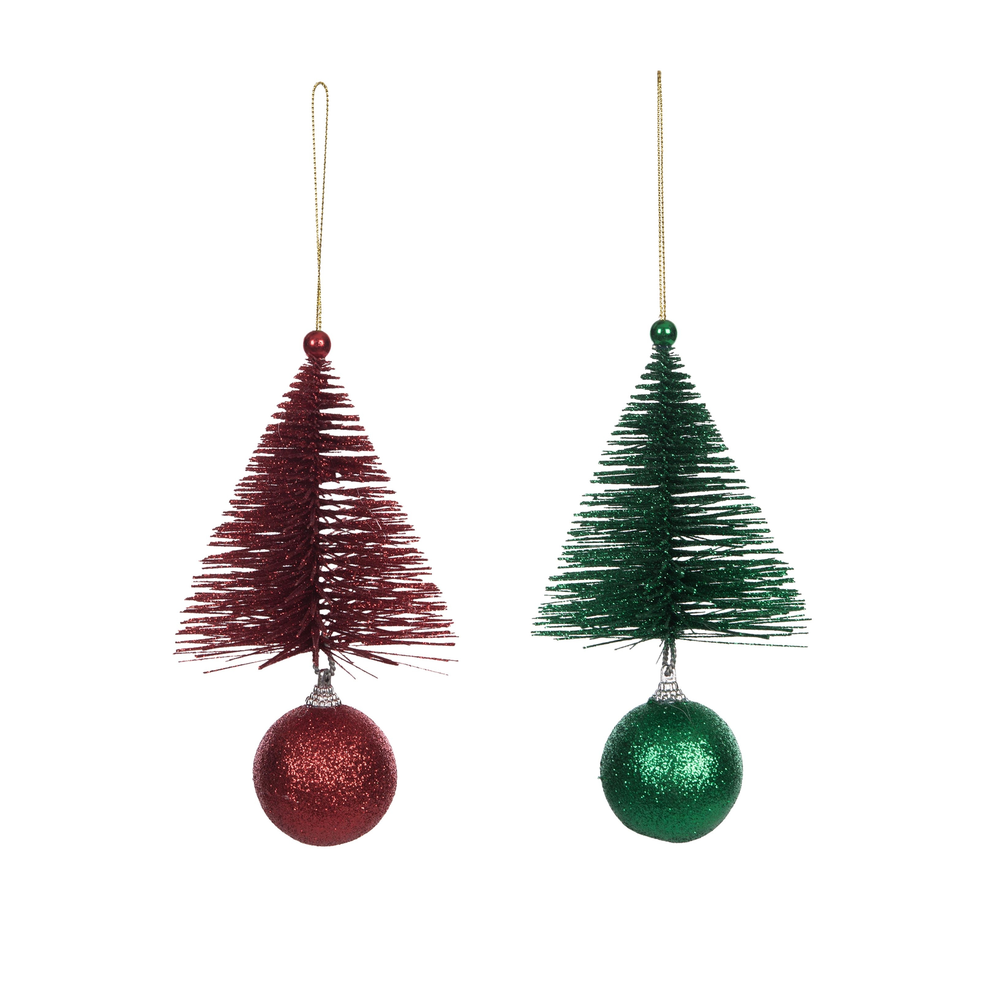 Red & Green Shimmer Tree Christmas Tree Ornament Set of 2