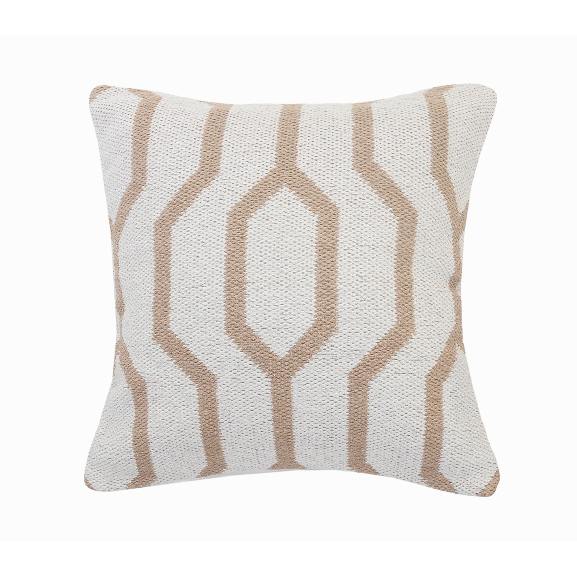 20" Tan and White Geometric Square Throw Pillow