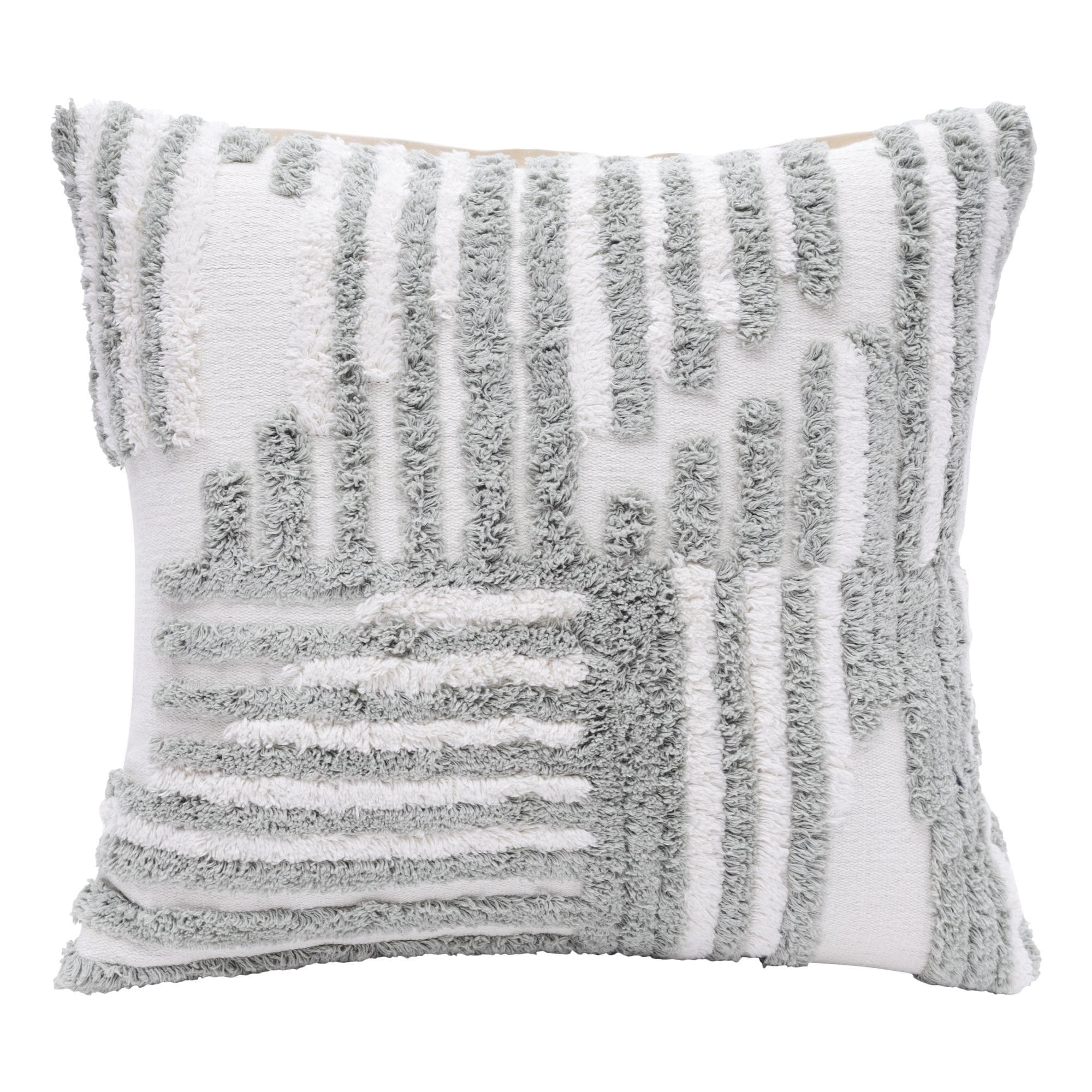 Hand Woven Solid Shag Square Throw Pillow - 18" - Beige and White