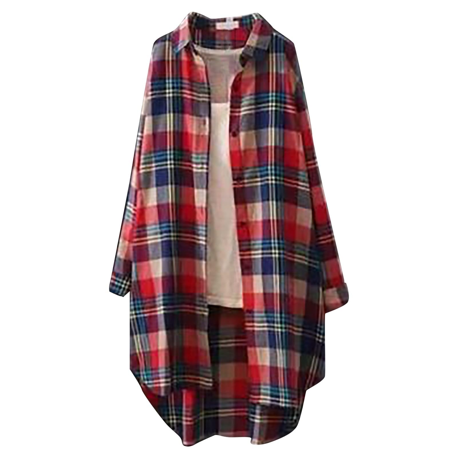 Plaid Shirts for Women Fall Trendy Open Front Work Cardigan Casual Long Sleeve Button Down Loose Gingham Jacket