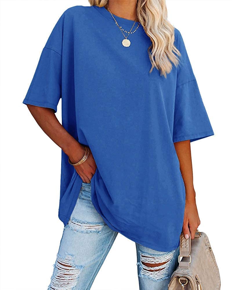 Fisoew Women's Oversized T Shirts Tees Half Sleeve Crew Neck Cotton Tunic Tops