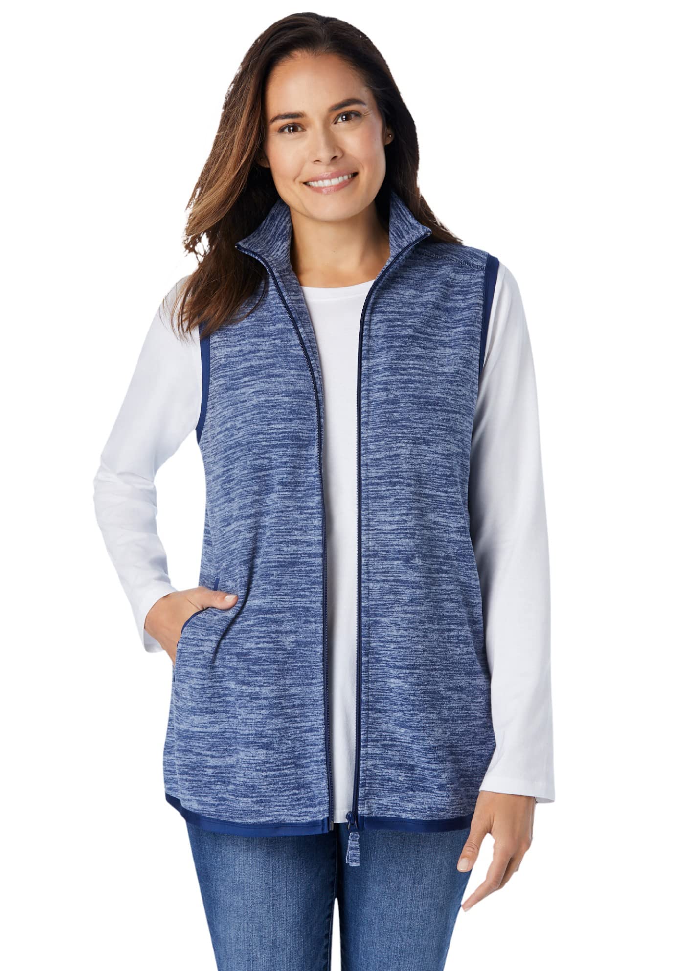 Woman Within Plus Size Zip-Front Microfleece Vest Long Fleece Vest