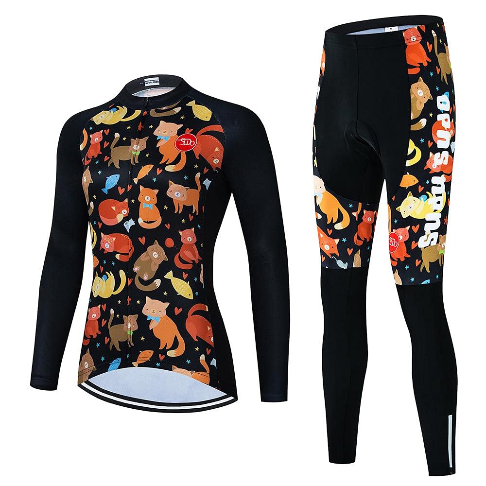 Women's Cycling Clothing Set Long Sleeve Road Bike Shirt Cycling Jersey Bicycle Pants with Gel Padded