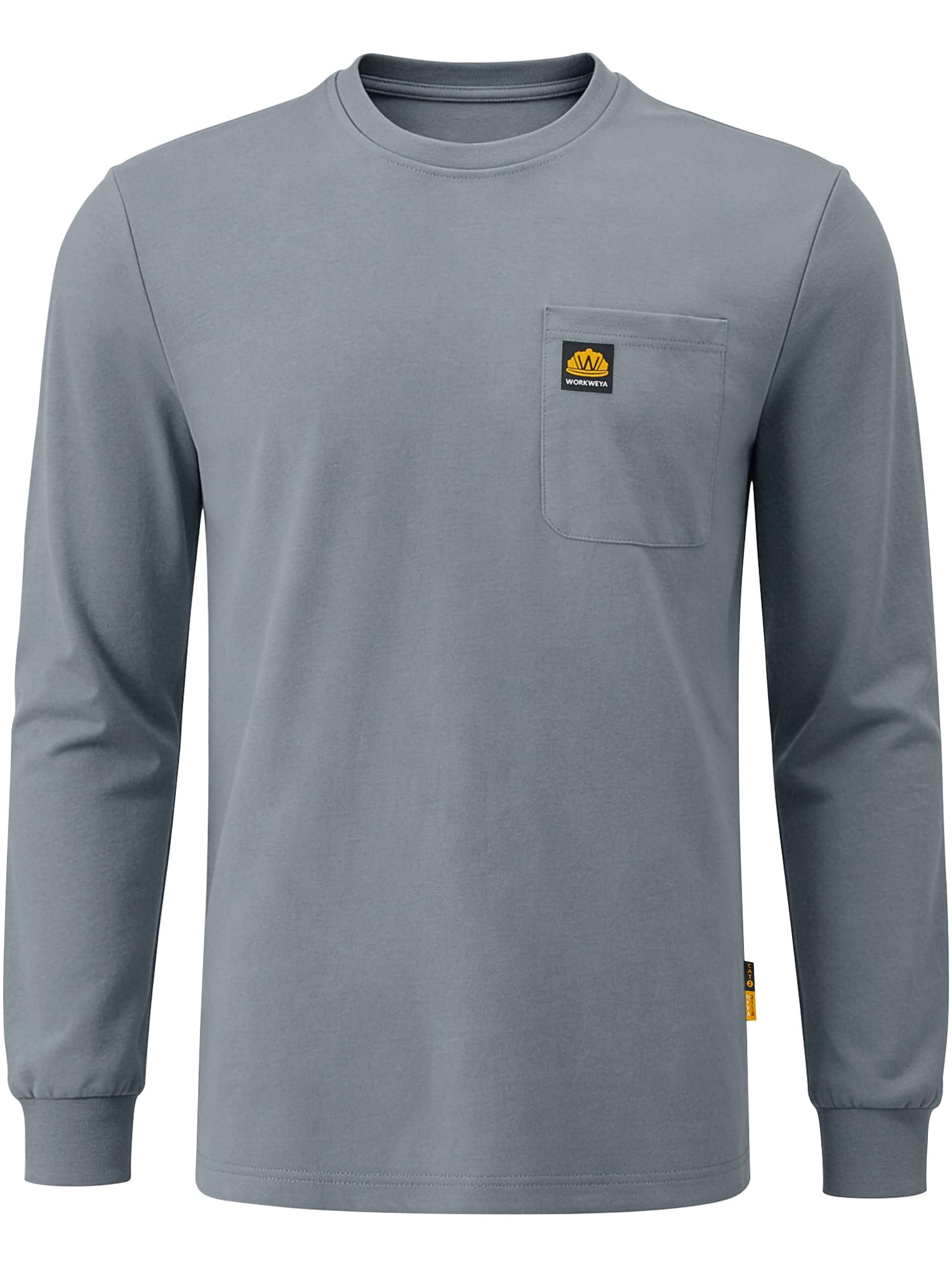 "FR MATERIAL: This WORKWEYA men's FR shirt is made with 100% cotton, 5.5 oz flame resistant treated fabric is and breathable, soft and skin-friendly, comfortable and durable." "FLAME RESISTANT PERFERMANCE: This long sleeve flame resistant T-shirt meets NFAPA 2112 and CAT2 FR standard , ATPV 8cal/cm2