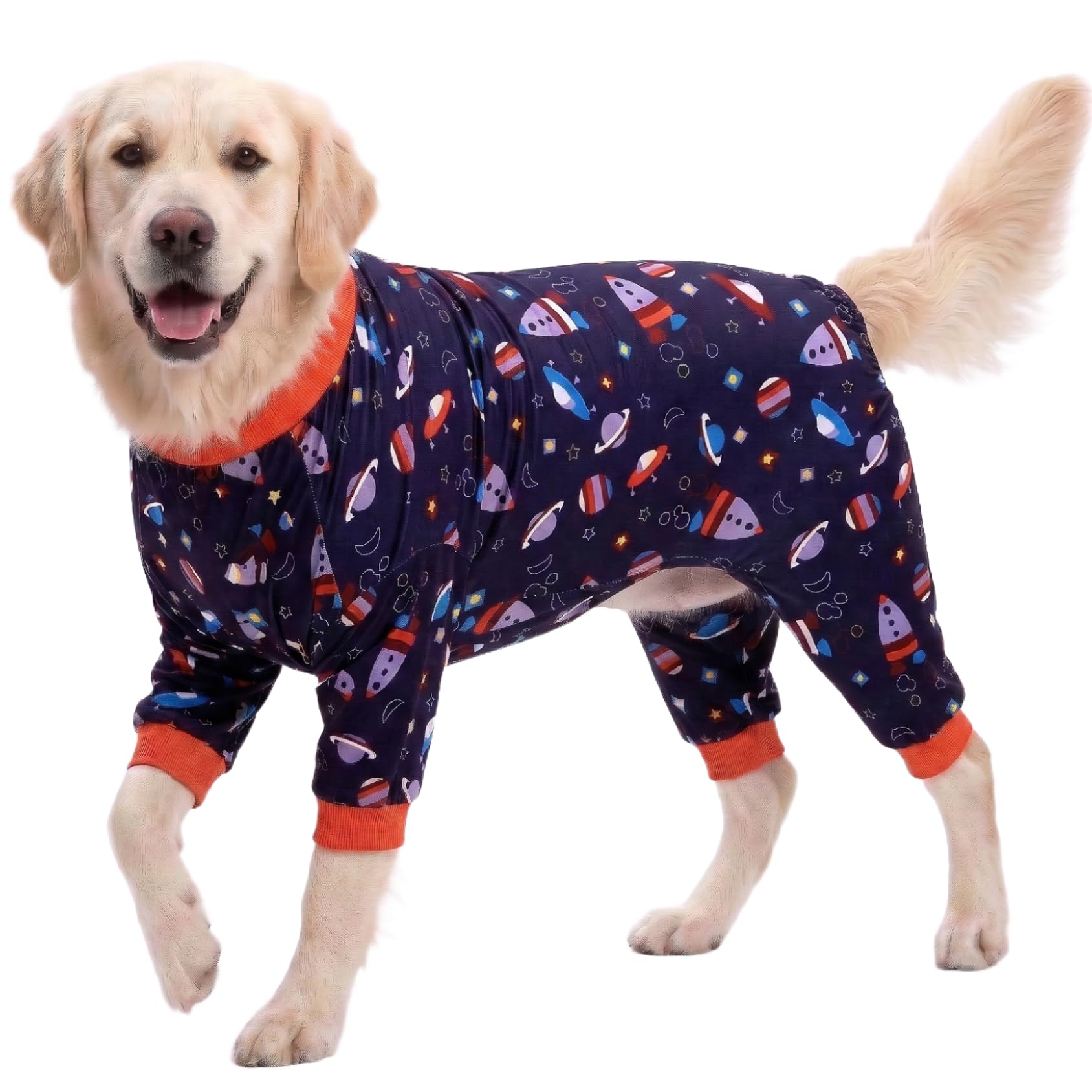 LovinPet Pullover Pitbull Pajama - Lightweight Dog Pjs, Full Coverage, Spacecraft Navy Print, Large Breed/Large