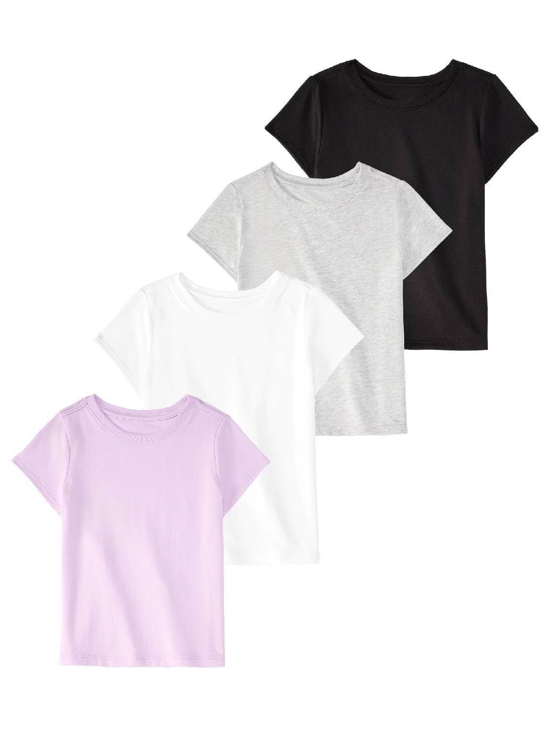 4-Pack Garanimals Toddler Girl Solid Tees: Size 5T in black, grey, white, and purple; perfect for mixing, matching, and everyday outfit changes Comfortable Fit for Babies & Toddlers: Tagless label and gentle stretch offer easy comfort for girls during playtime Durable & Easy Care: These jersey tees