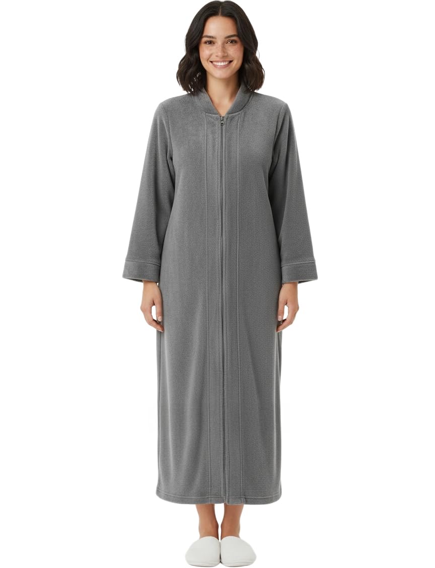 Alexander Del Rossa Kimono Robe with Zipper, Zip Up Robe for Women