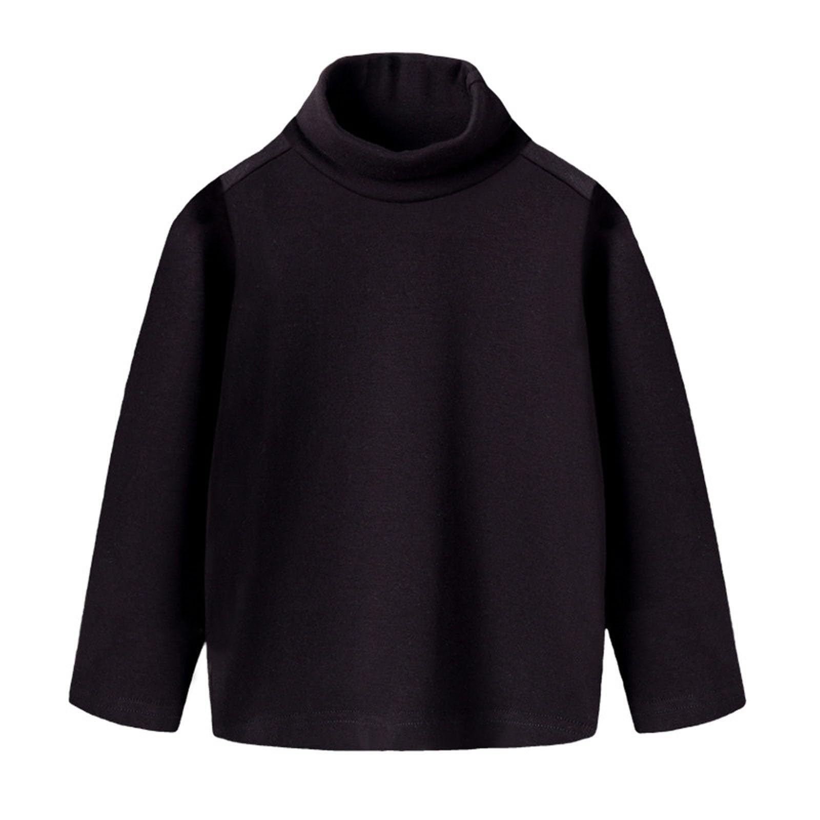 Girls T-Shirt Mock Neck Long Sleeve Slim Fit T-Shirt Tops Lightweight Knit Tee Soft Cotton Blouse Clothes (Black, 4-5 Years)