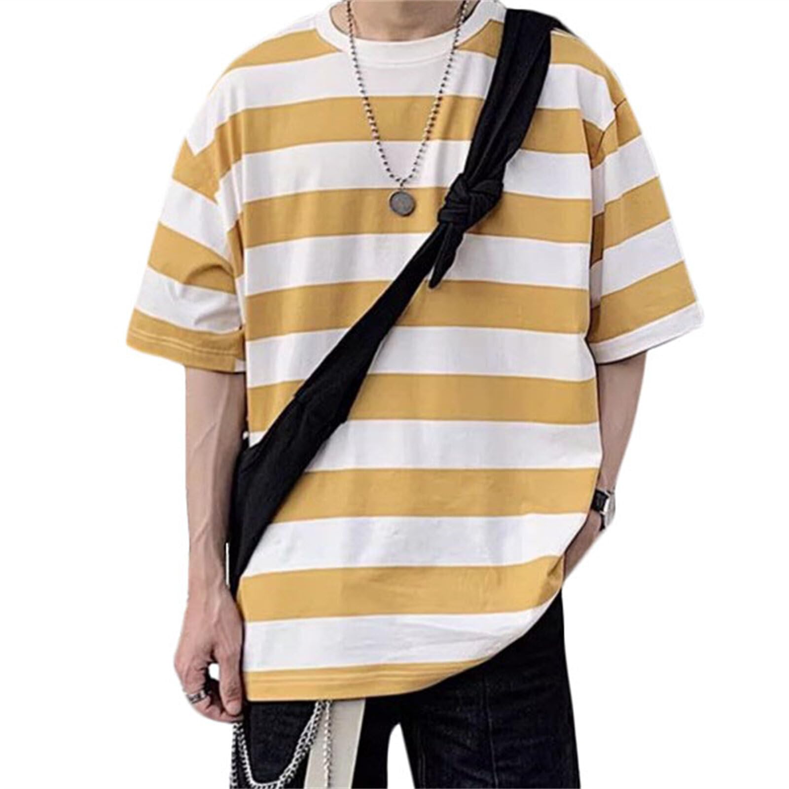 Fabric: Made of high-quality cotton, light and breathable. Features: This gothic pullover is designed with a round neck, stripes, short sleeves, fake two-piece design, casual loose, urban style, hip-hop style, fashionable style, unisex top, suitable for men and women. Couple wear: This hip-hop cloth