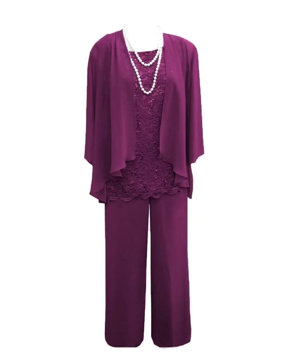 XHFSOXIN Women's 3 Pieces Mother of The Bride Dress Pant Suits Lace Wedding Guest Dress with Jacket