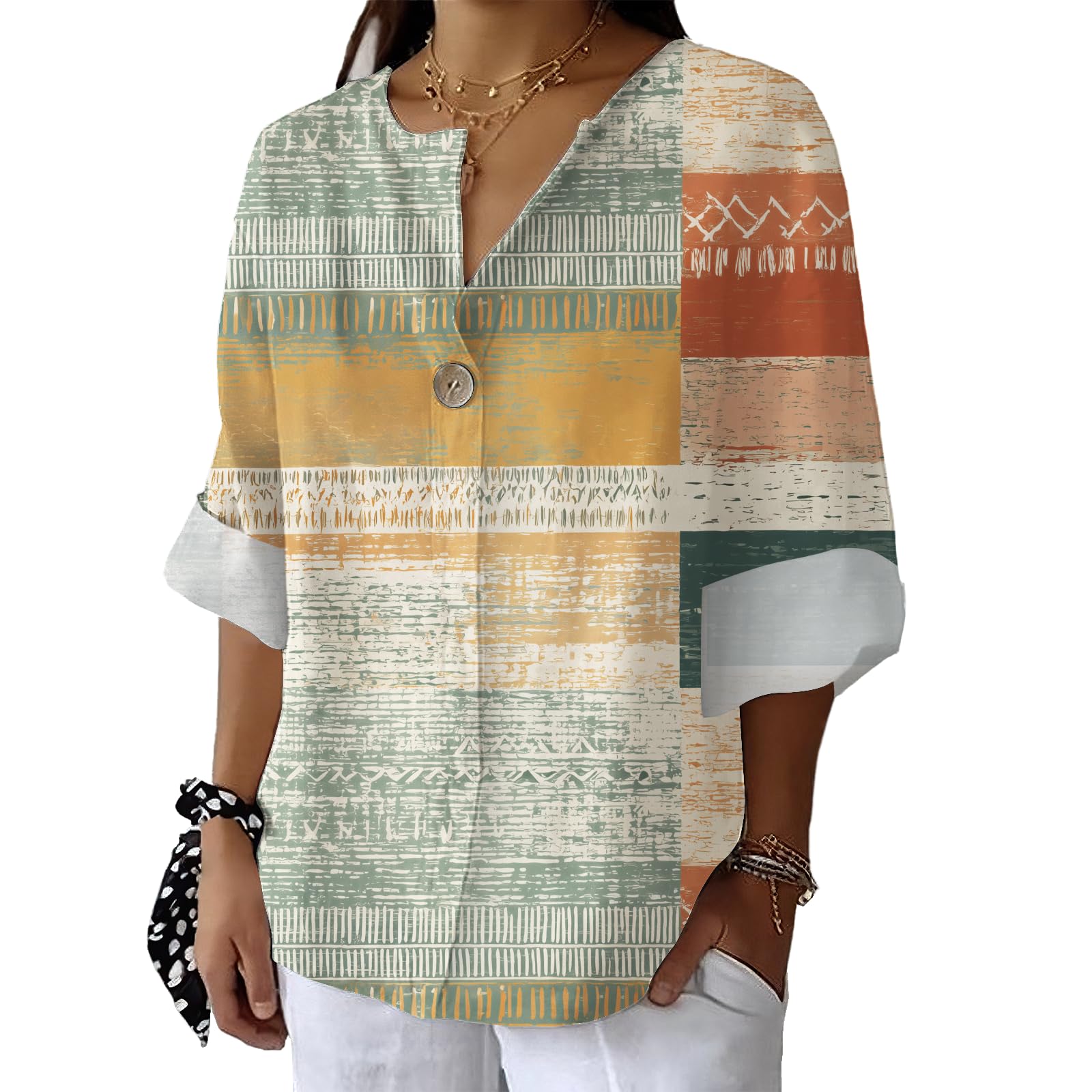 Material:Traditional retro floral graphic shirts is made of high-quality Polyester fabric,which is soft, comfortable,breathable and light weight,casual plus size fit relaxed fitting,cool and skin friendly,It's comfortable to wear all day,Good blouse for your wardrobe Features:V neck womens shirts wi