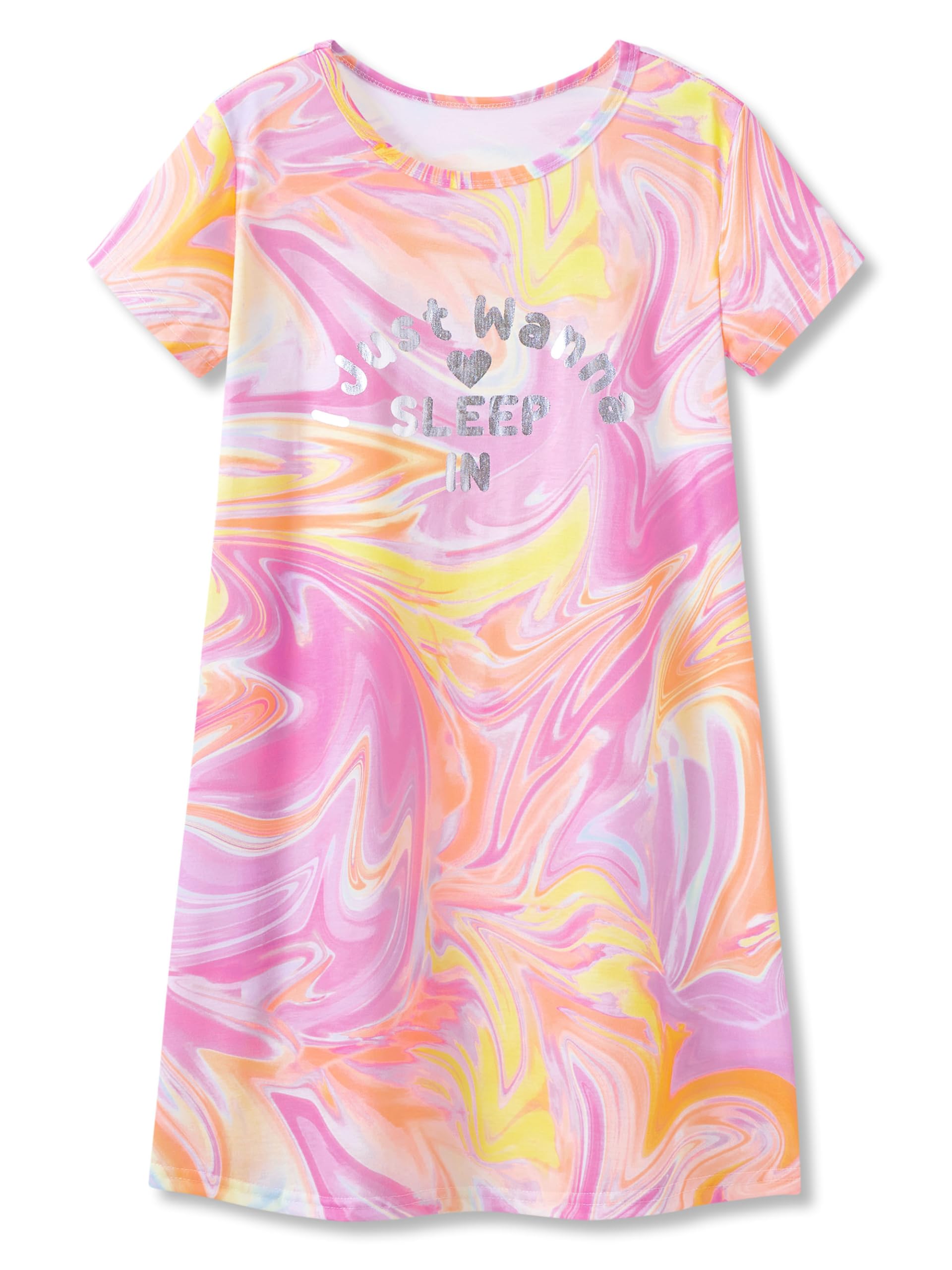 Fabric: 95%Polyester 5% Spandex.These nightgown are soft and breathable, so your girl will sleep more comfortably. Feature: This girls’ nightgown features all-over marble print and the glitter text of ‘I Just Wanna SLEEP IN’ on the rainbow color hues, it will make your girls stand out on Pajam