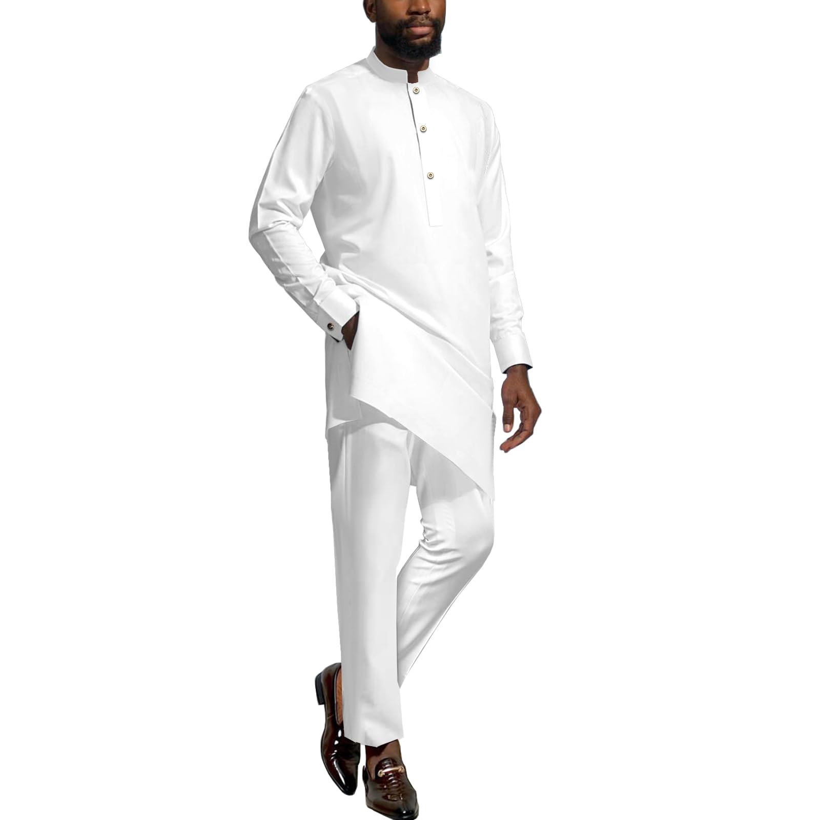 MATERIAL & FEATURE:African dashiki suit is made of polyester blend fabrics which is soft, comfortable and stylish, breathable, smoother, anti-wrinkle, does not ball ,suitable for many occasions. CLASSIC & SLIM FIT: Men's formal african traditional 2 piece set / Henley Neck / Mandarin Collar /Long