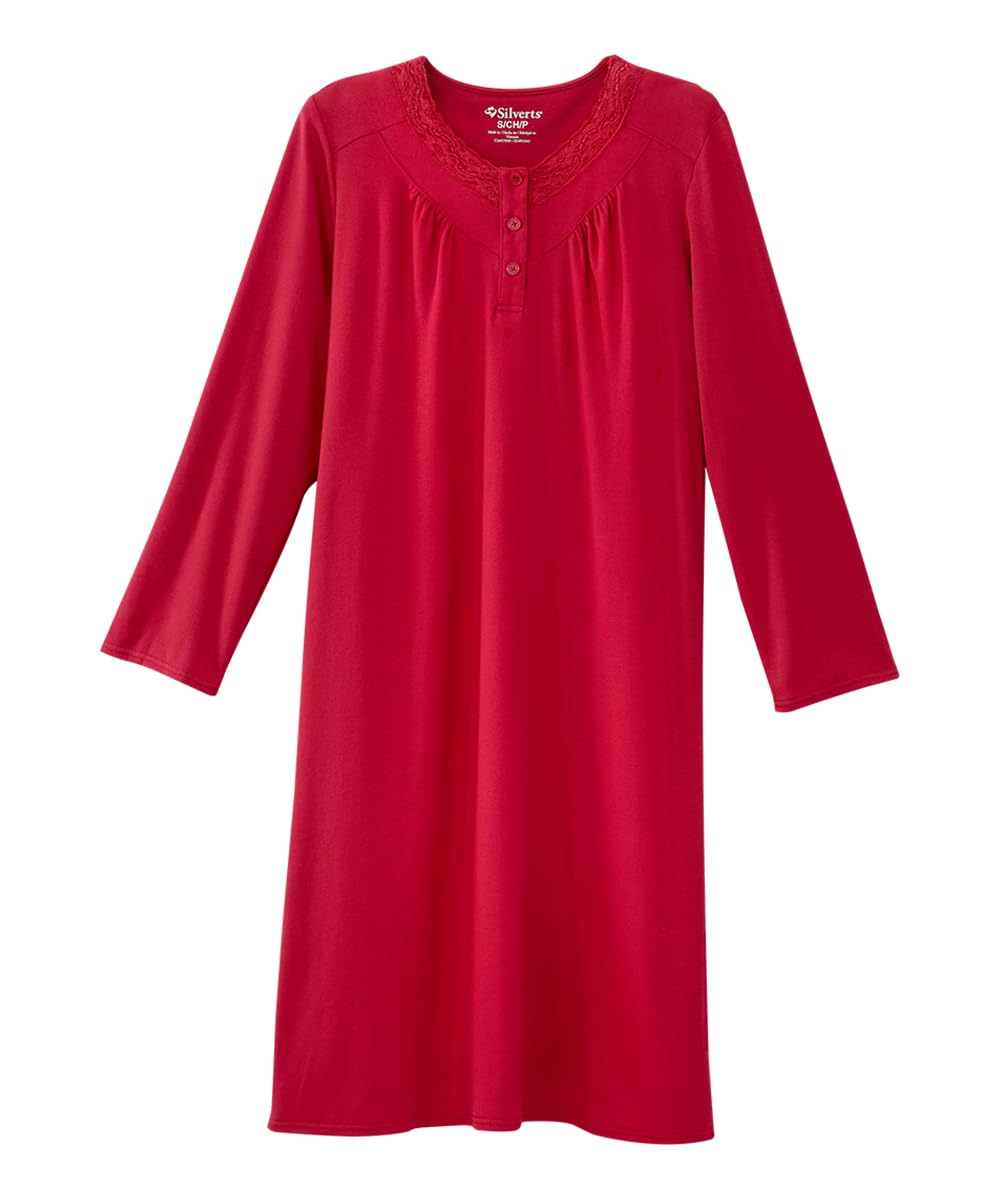 Silverts Open-Back Hospital Gowns for Women - Comfortable, Dignified, Easy Dressing for Seniors & Patients - Lace Trim