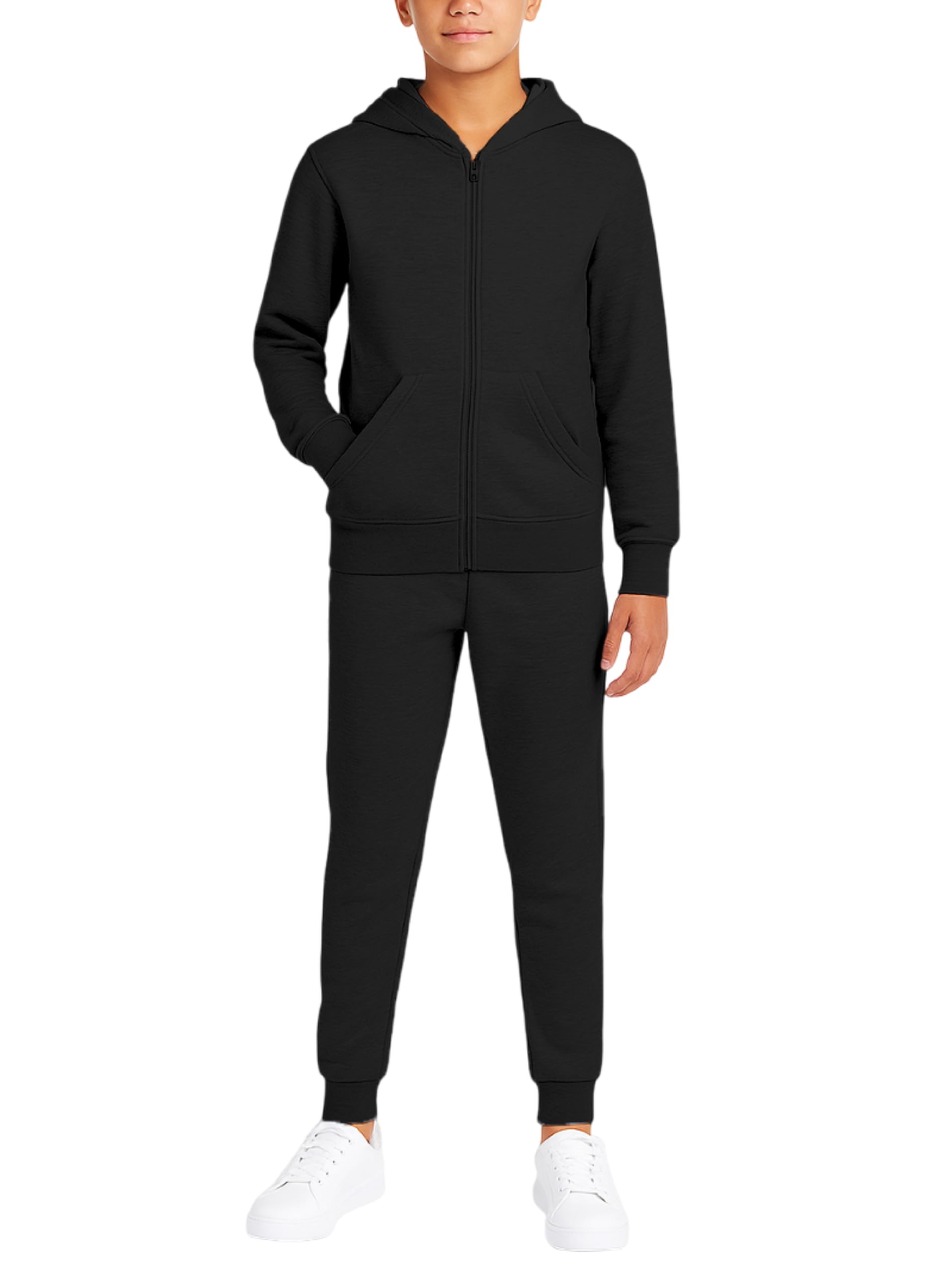 2 Piece Boys' Clothing Set: This boys' sweatsuit includes a zip-up black hoodie and matching sweatpants, making it a versatile boys' clothing set for school, everyday wear, or play. A reliable sweat suit option for boys clothes size 8, boys clothes size 10, and boys suits size 14, this set supports