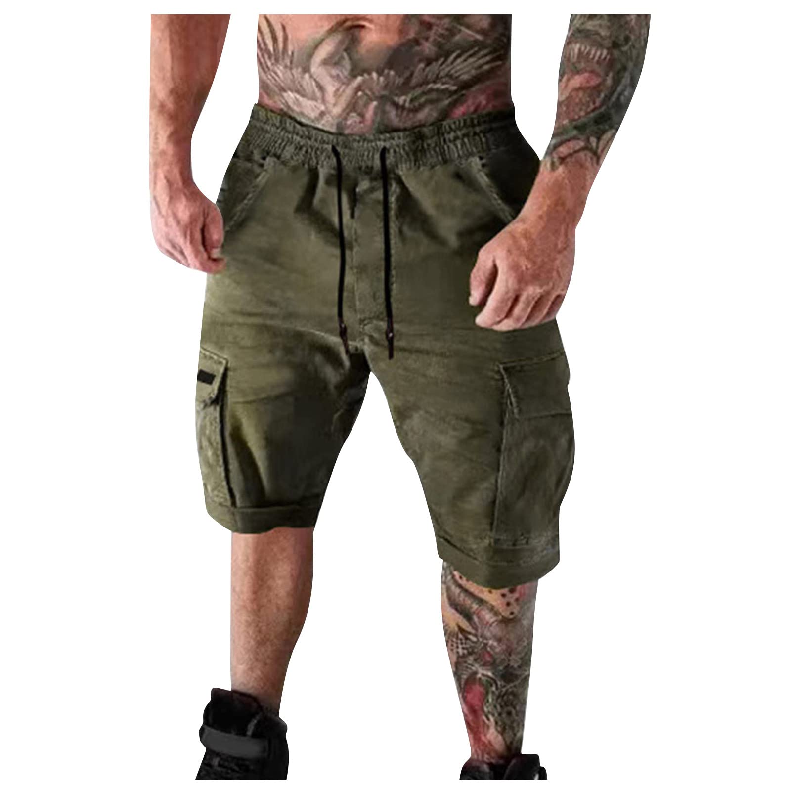 WENKOMG1 Men's Summer Casual Hiking Cargo Shorts Elastic Waist Drawstring Athletic Workout Gym Shorts, S-5XL